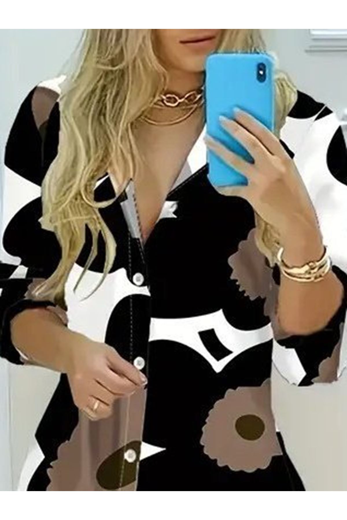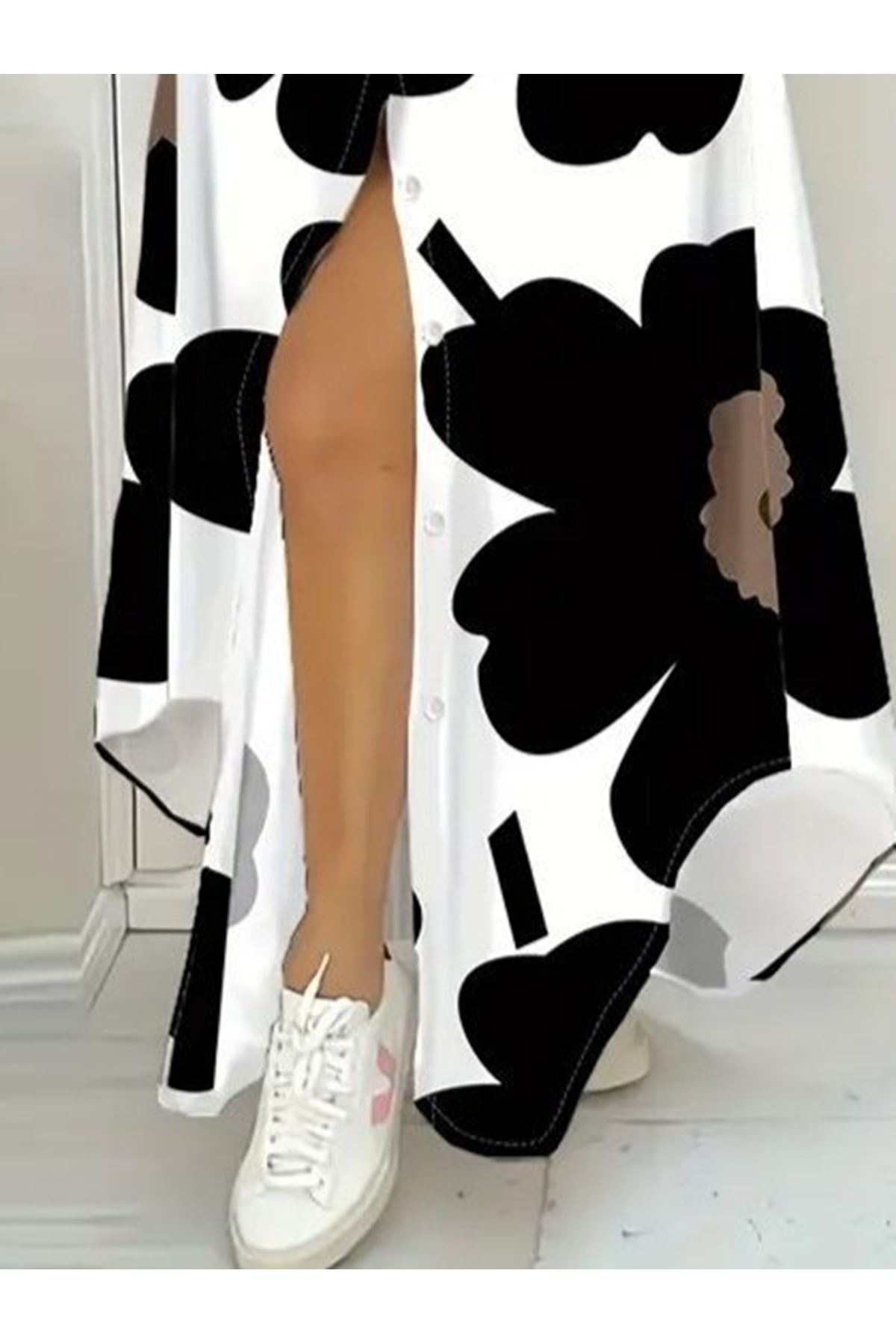 Kadın Yakalı önden Düğmeli çiçek Desenli Uzun Süprem Elbise