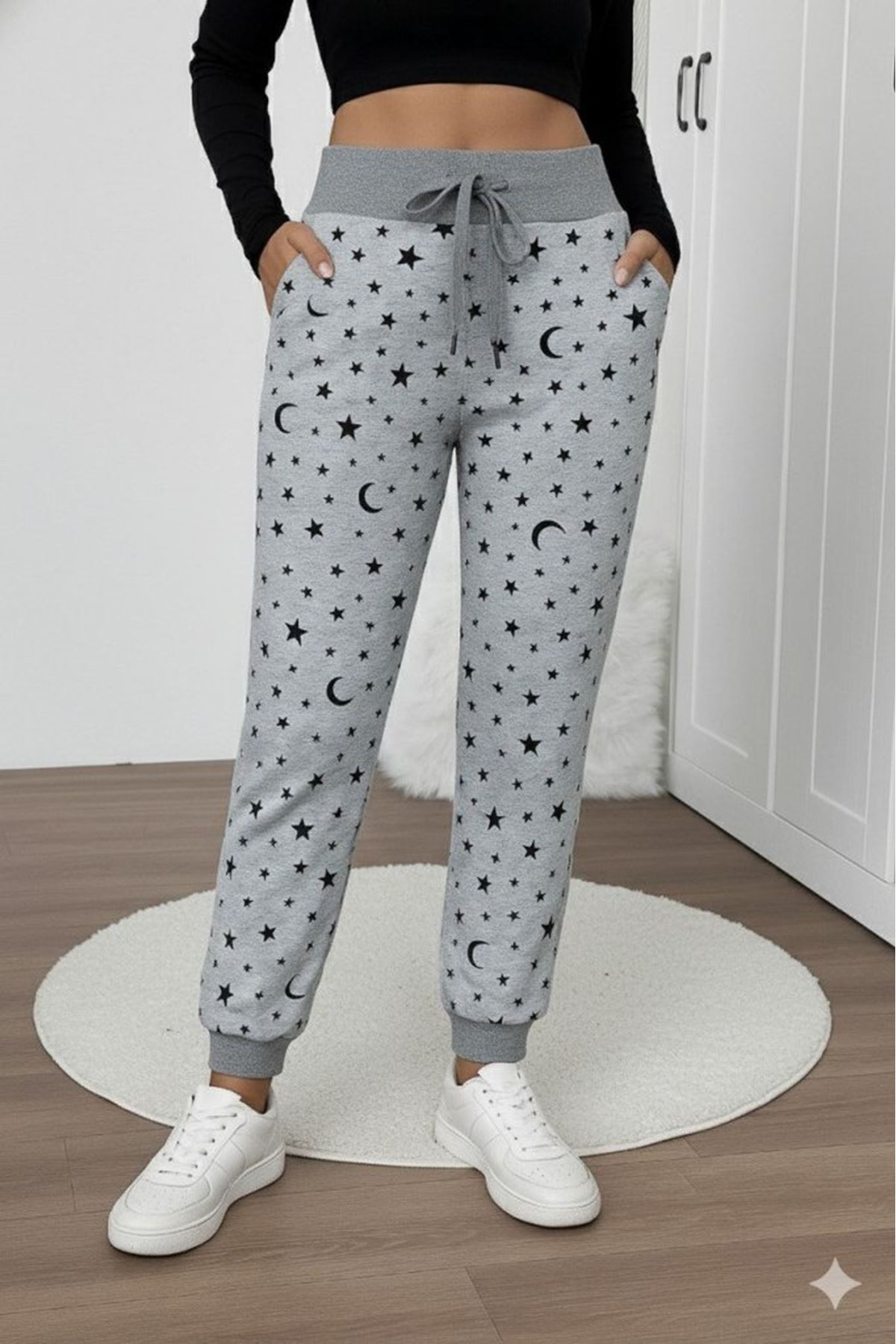 Kadın Yüksek Bel Bağcıklı Desenli Iki Iplik Pantolon