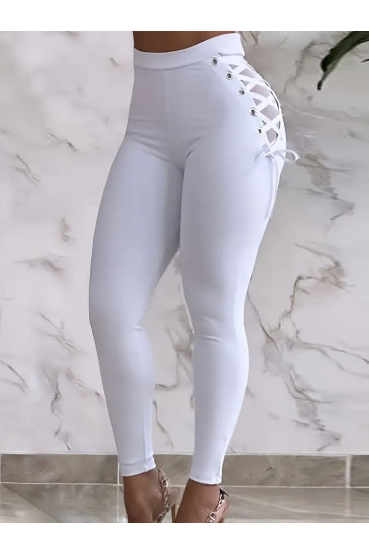 Kadın Yüksek Bel çapraz Bağcıklı Tül Detaylı Dalgıç Tayt