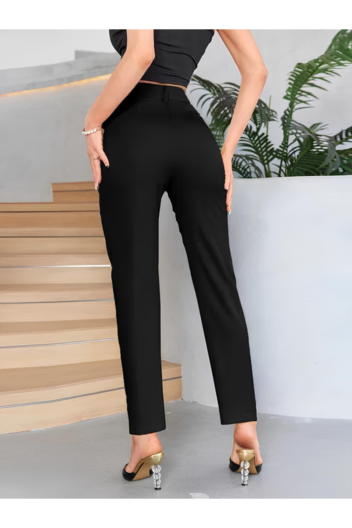 Kadın Yüksek Bel Cepli önden çimalı Dokuma çanta Pantolon