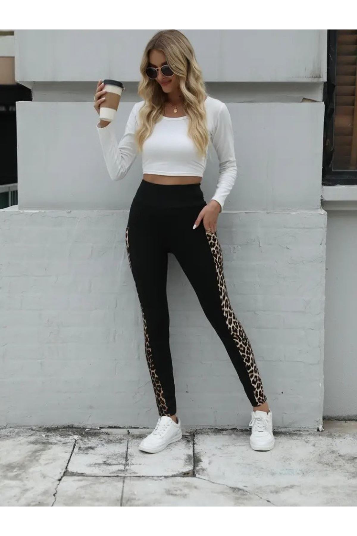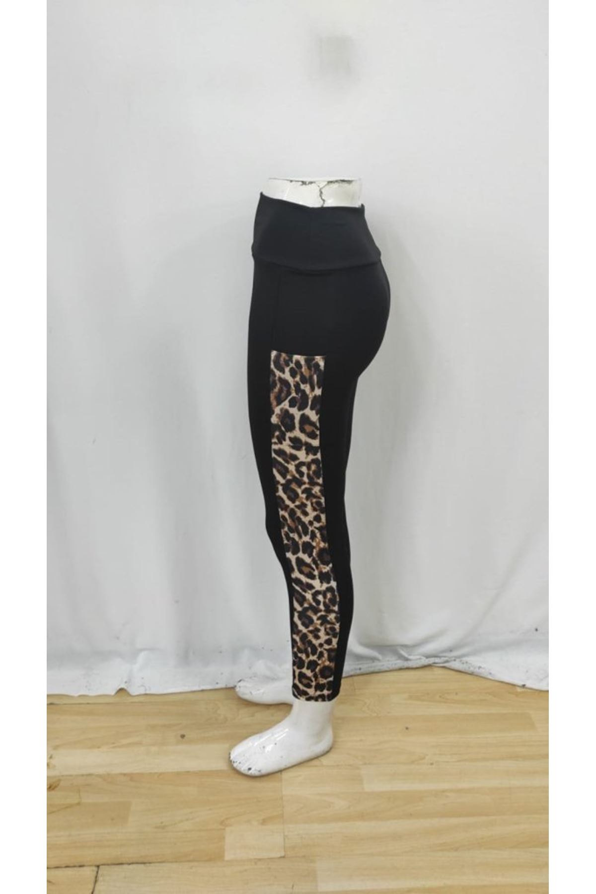 Kadın Yüksek Bel Leopar Desen Ve Cep Detaylı Dalgıç Tayt