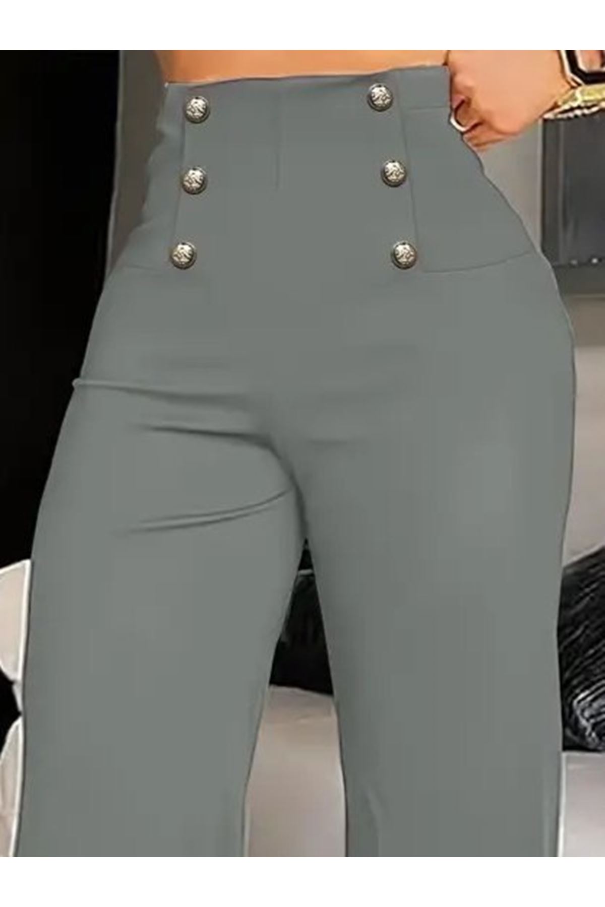 Kadın Yüksek Bel önden Düğmeli Uzun Paçaya Doğru Geniş Ithal Krep Pantolon