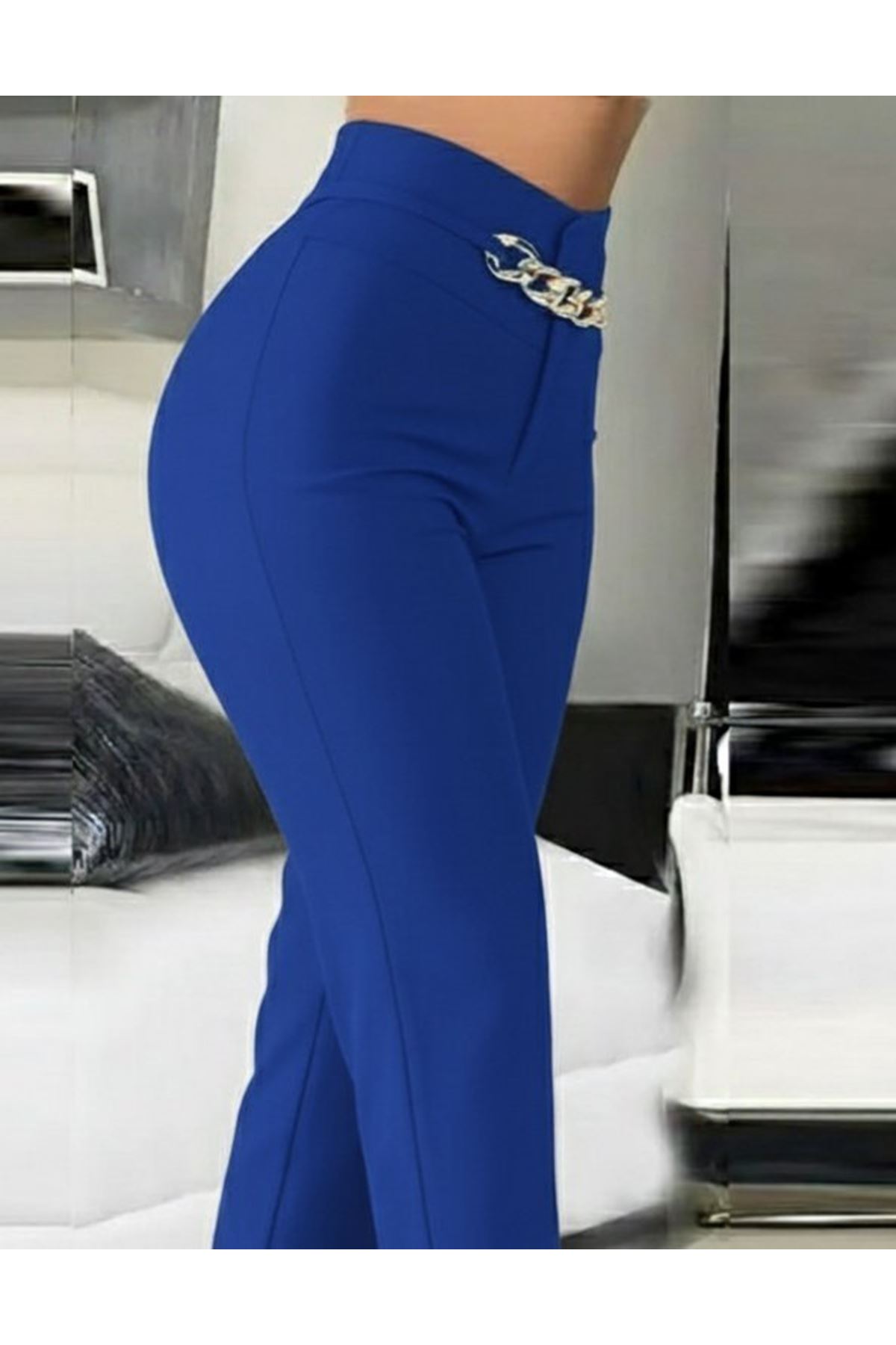 Kadın Yüksek Bel önden Zincir Detaylı Ithal Krep Pantolon