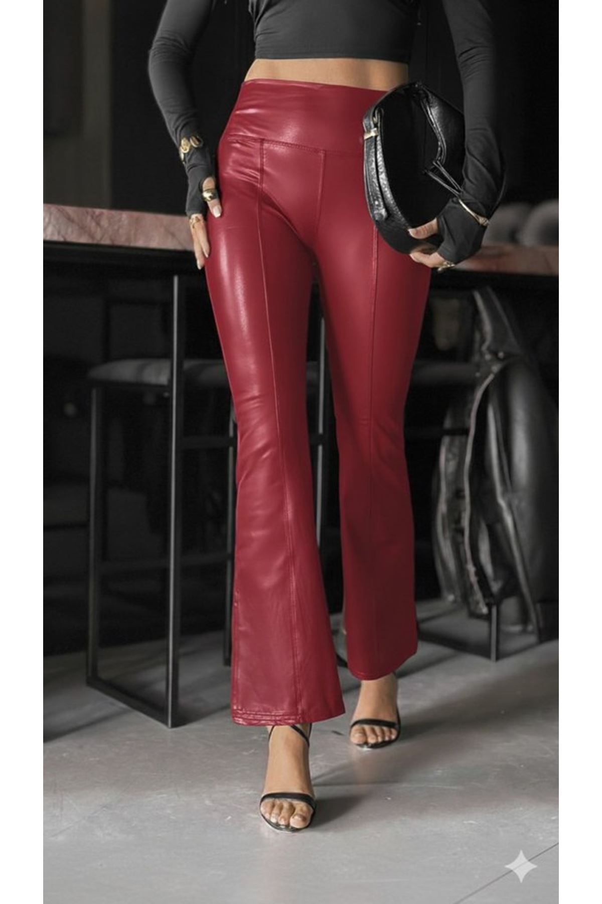Kadın Yüksek Bel Paçaya Doğru Geniş Deri Pantolon