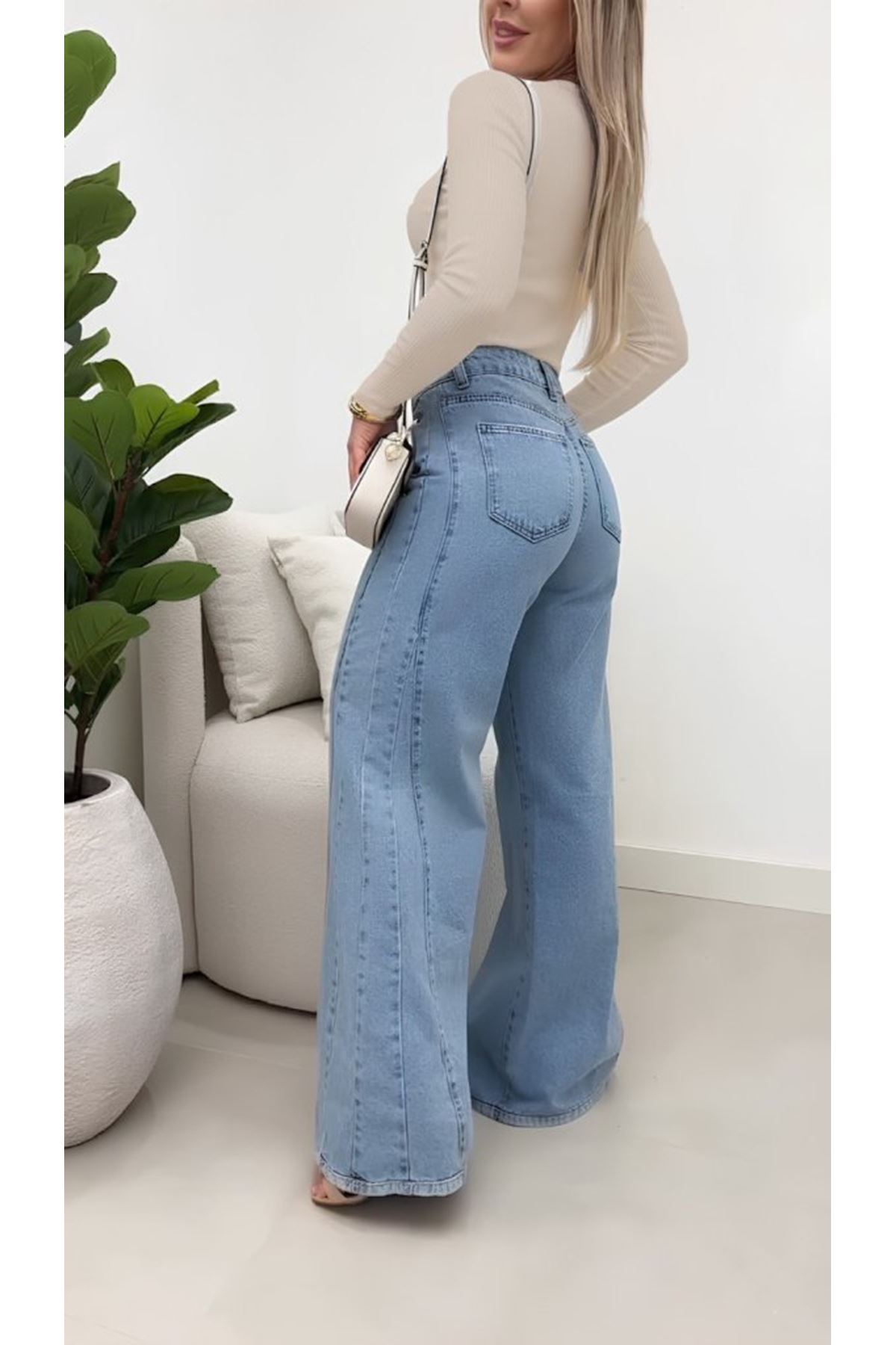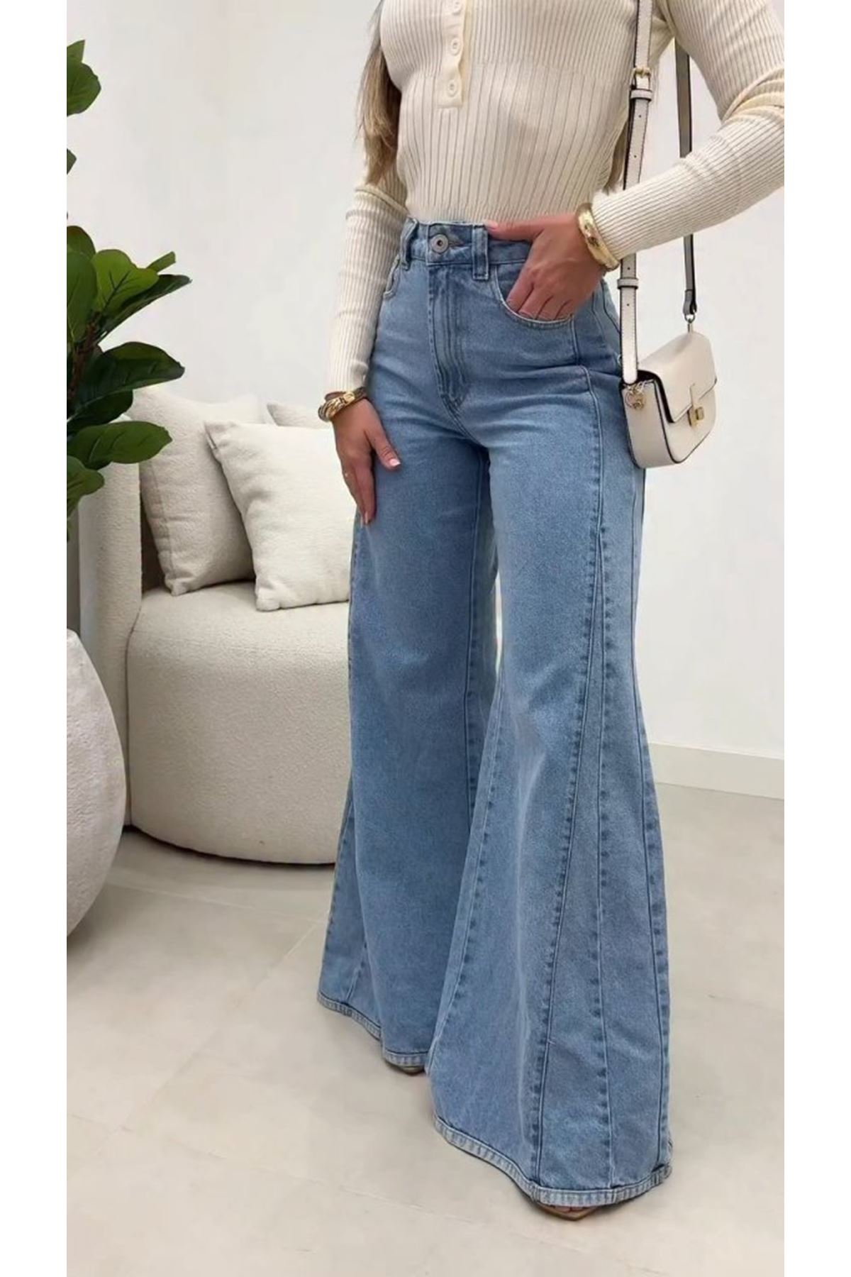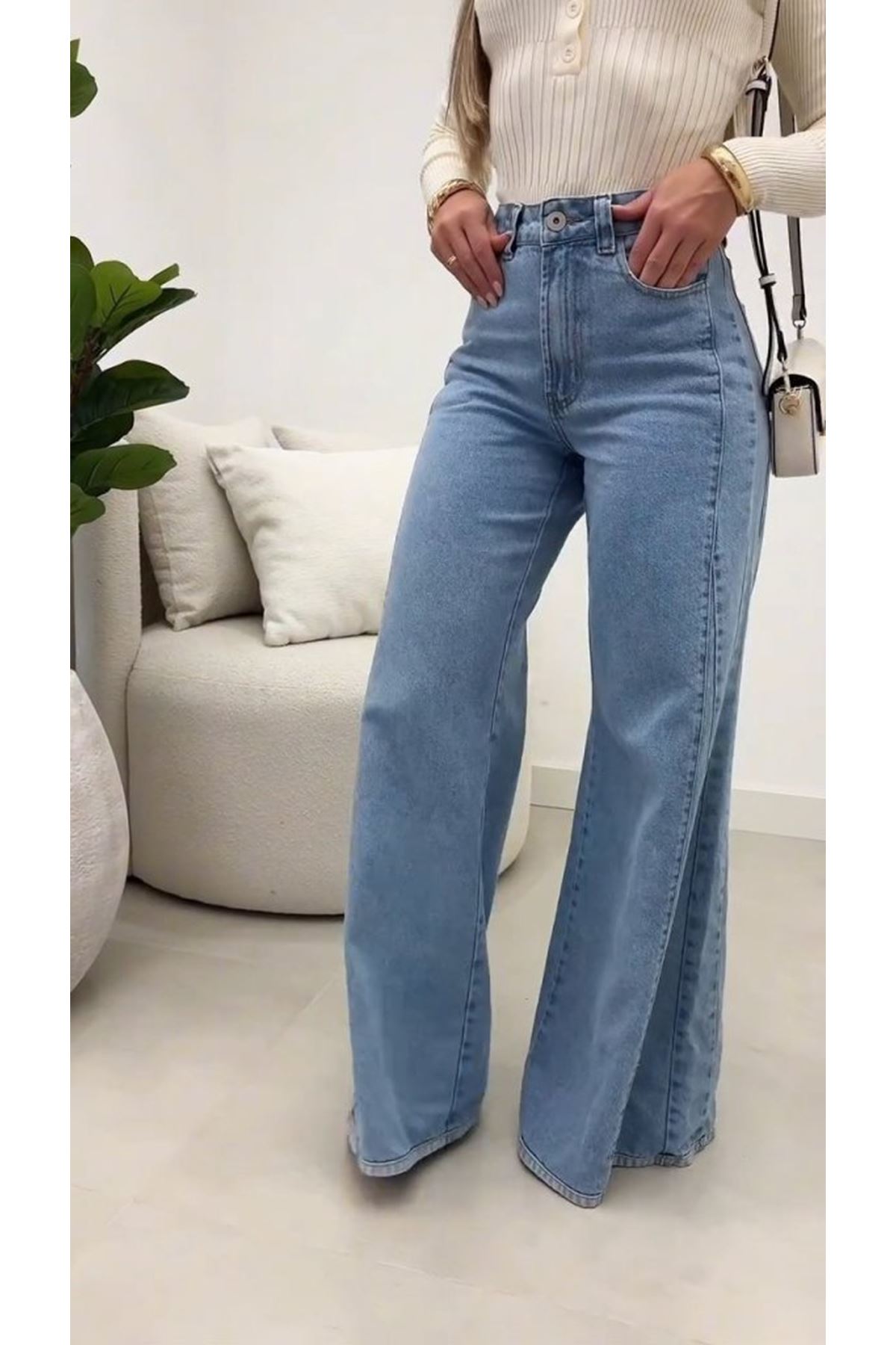 Kadın Yüksek Bel Paçaya Doğru Geniş Kesimli Kot Pantolon