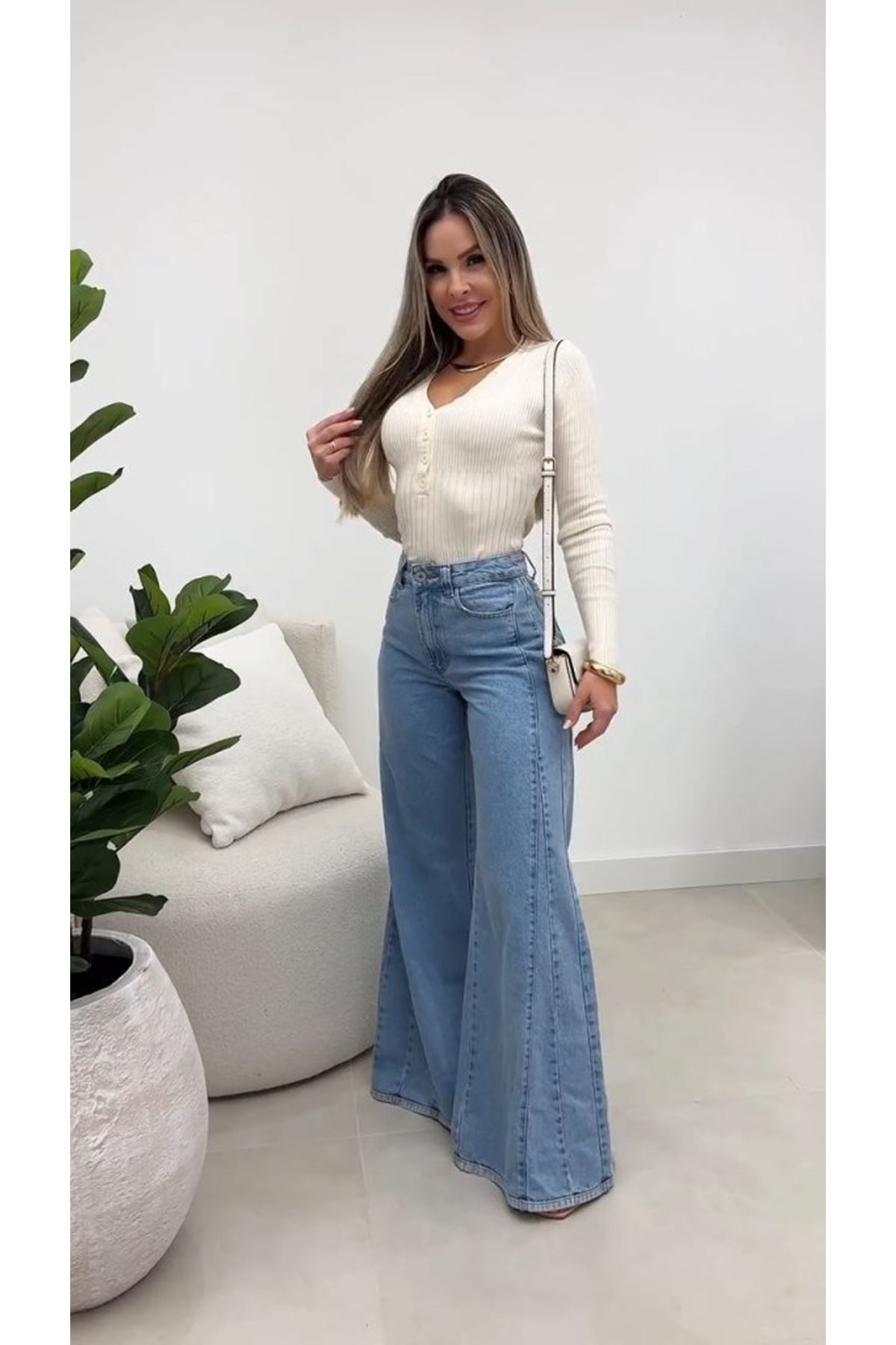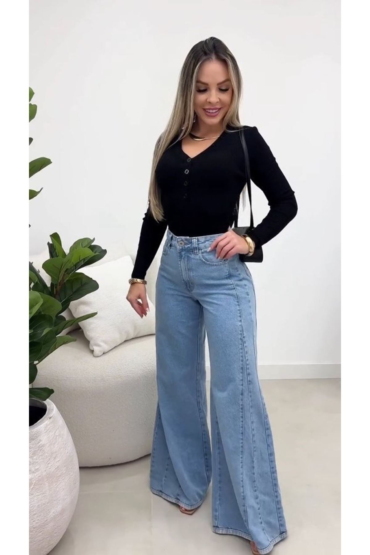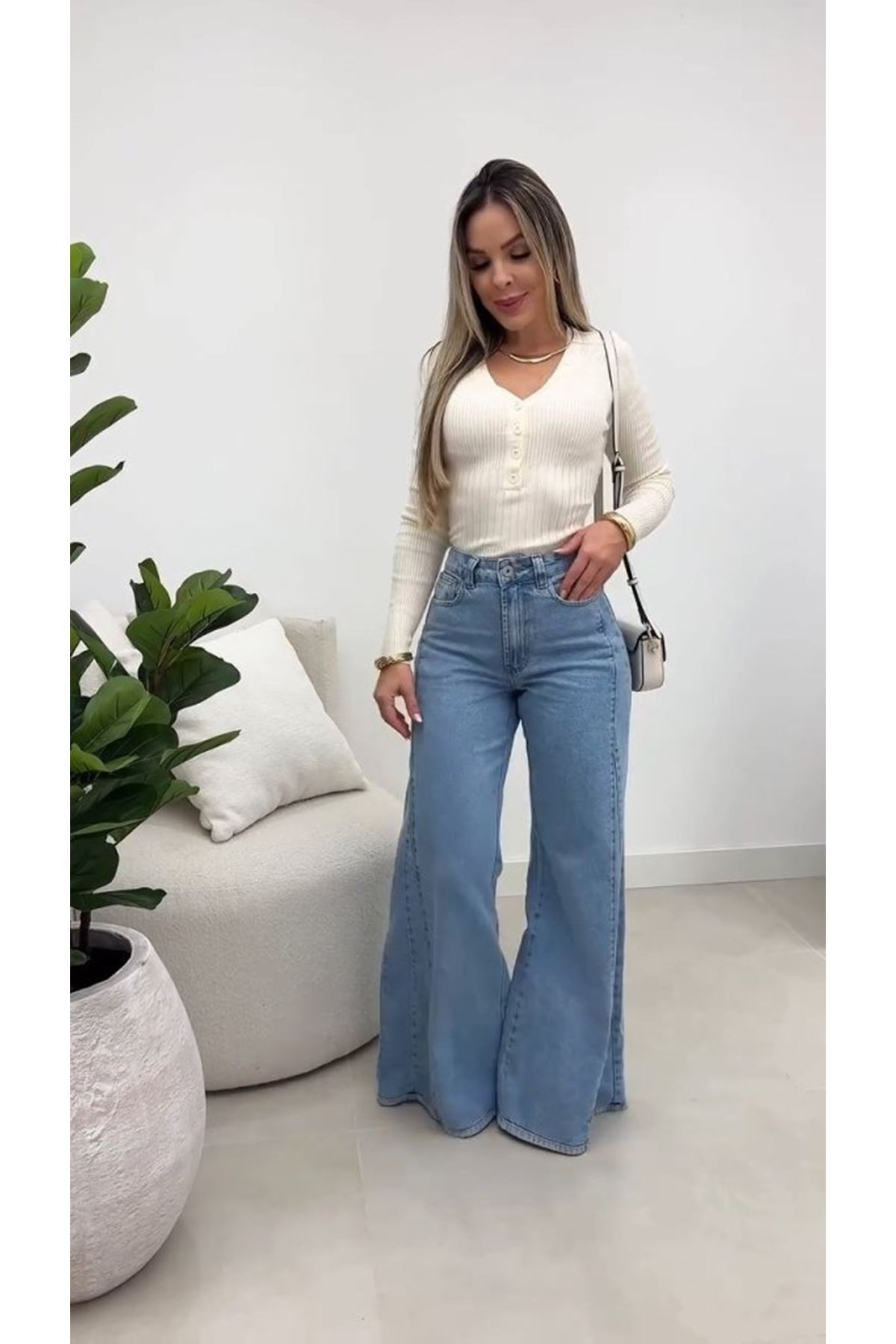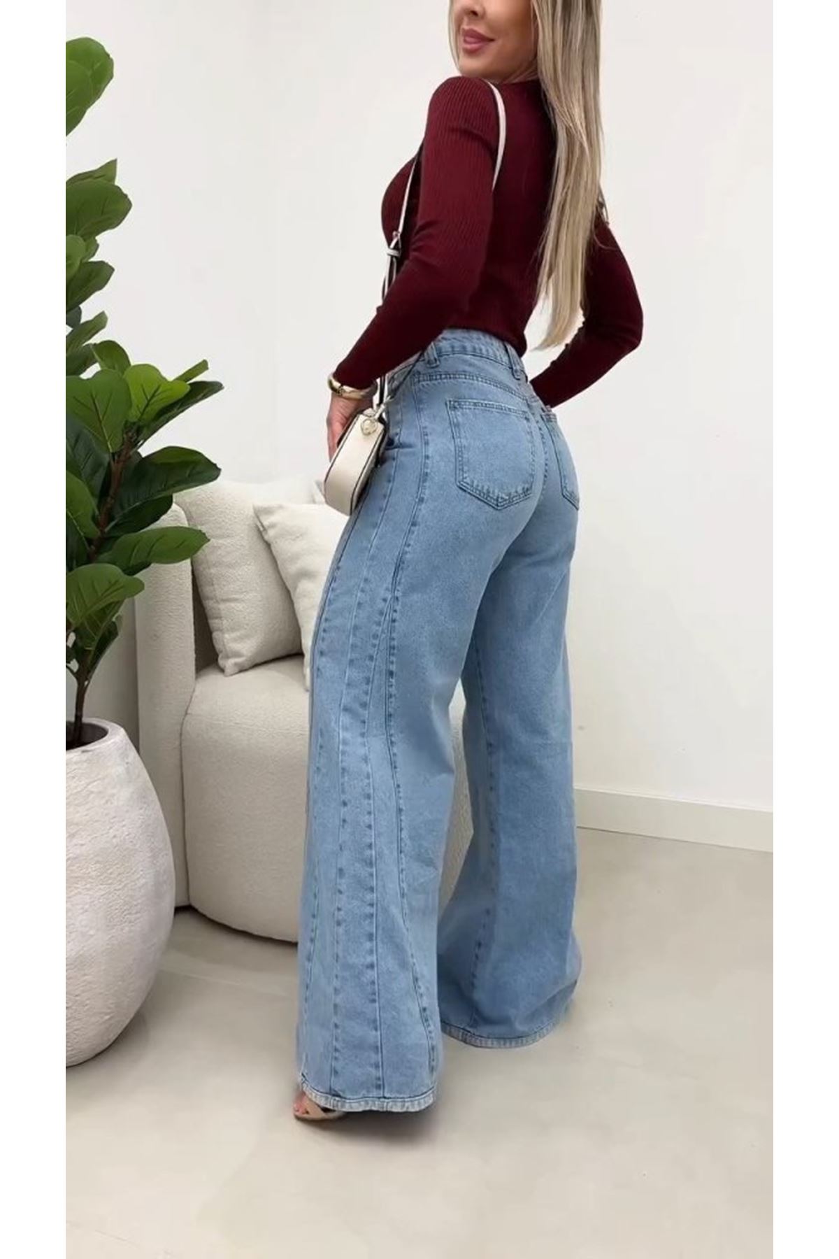 Kadın Yüksek Bel Paçaya Doğru Geniş Kesimli Kot Pantolon