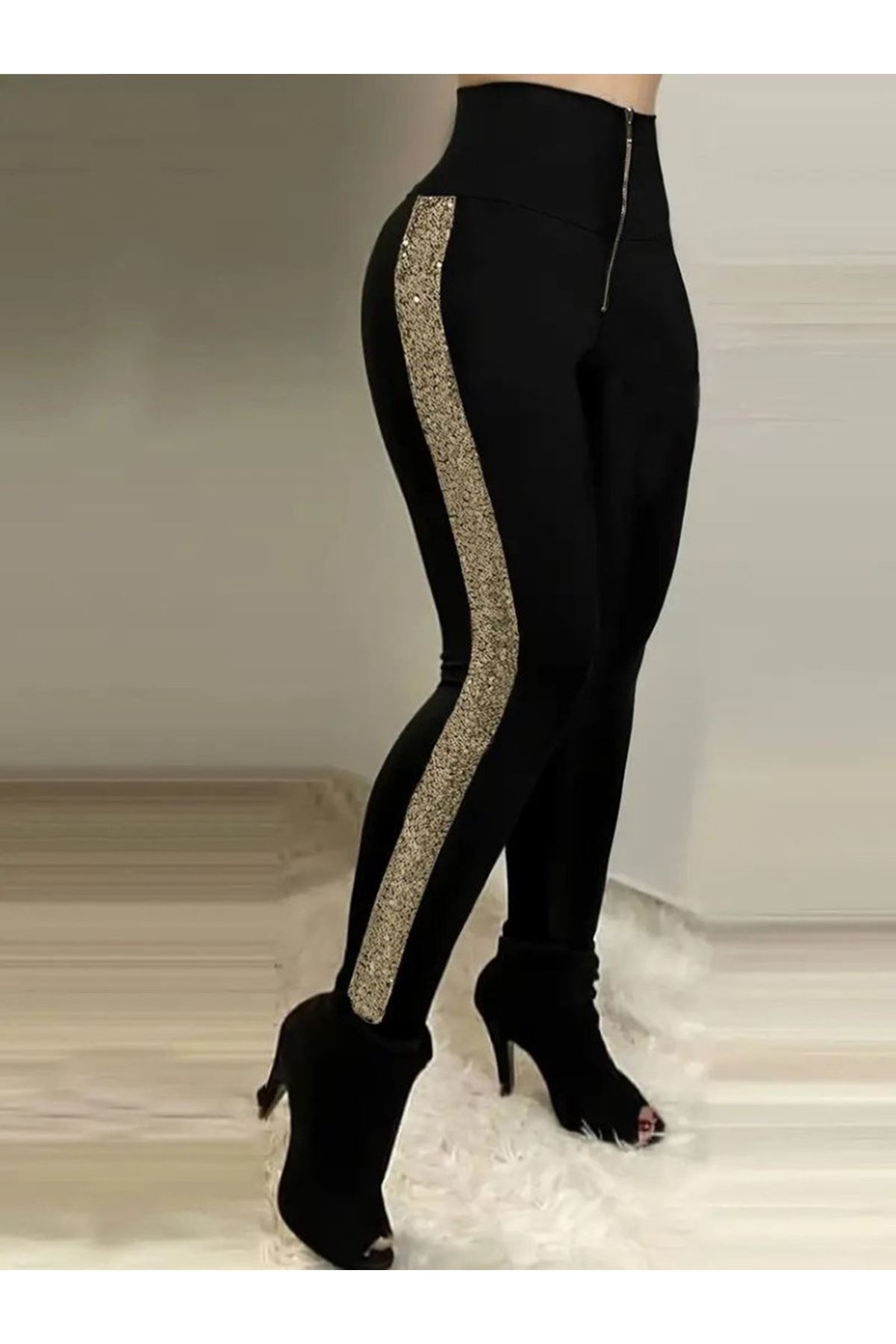 Kadın Yüksek Bel Yan şerit Detaylı Dalgıç Tayt