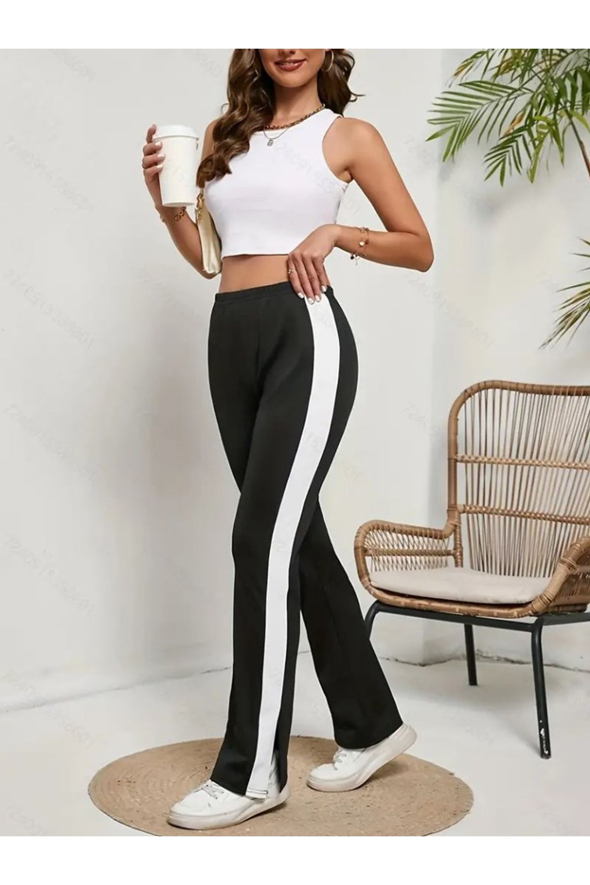 Kadın Yüksek Bel Yan şerit Detaylı Yırtmaçlı Viskon Iki Iplik Pantolon