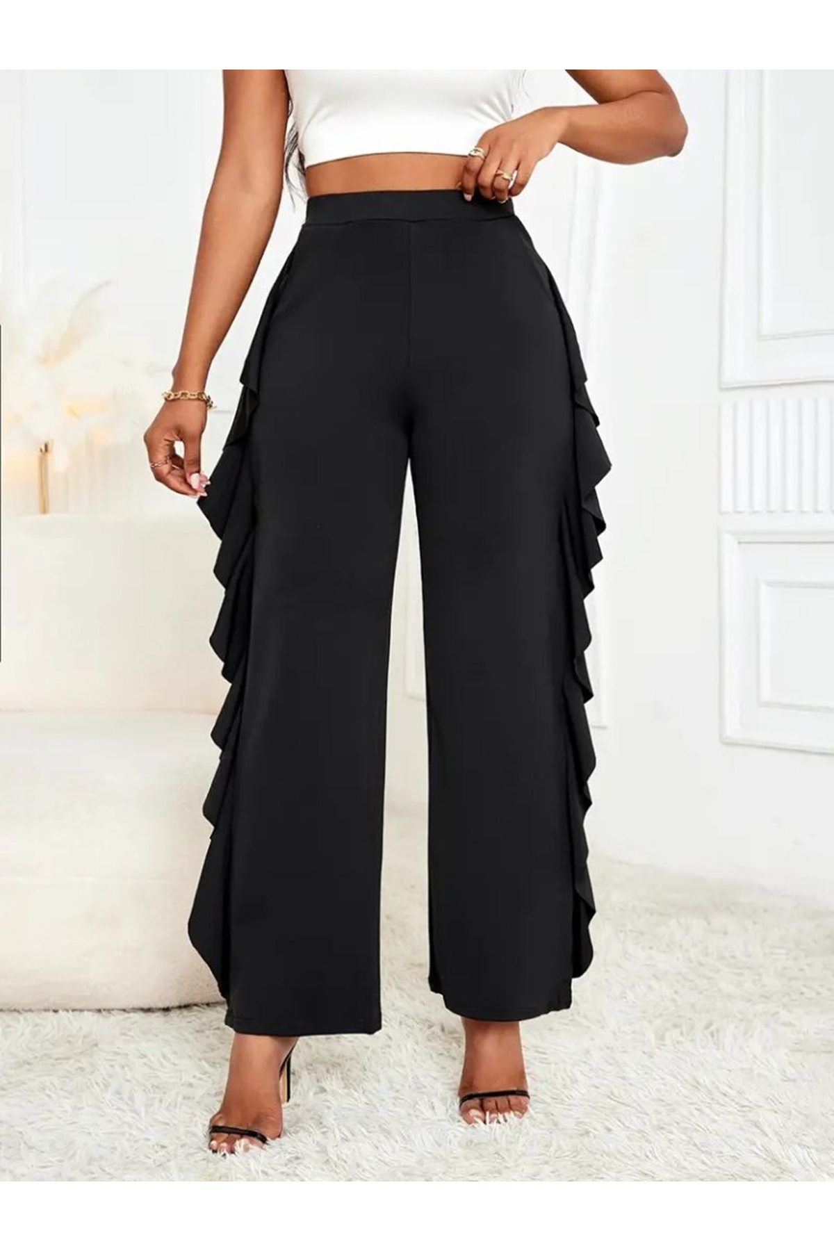 Kadın Yüksek Bel Yanları Volanlı Cepli Sandy Pantolon