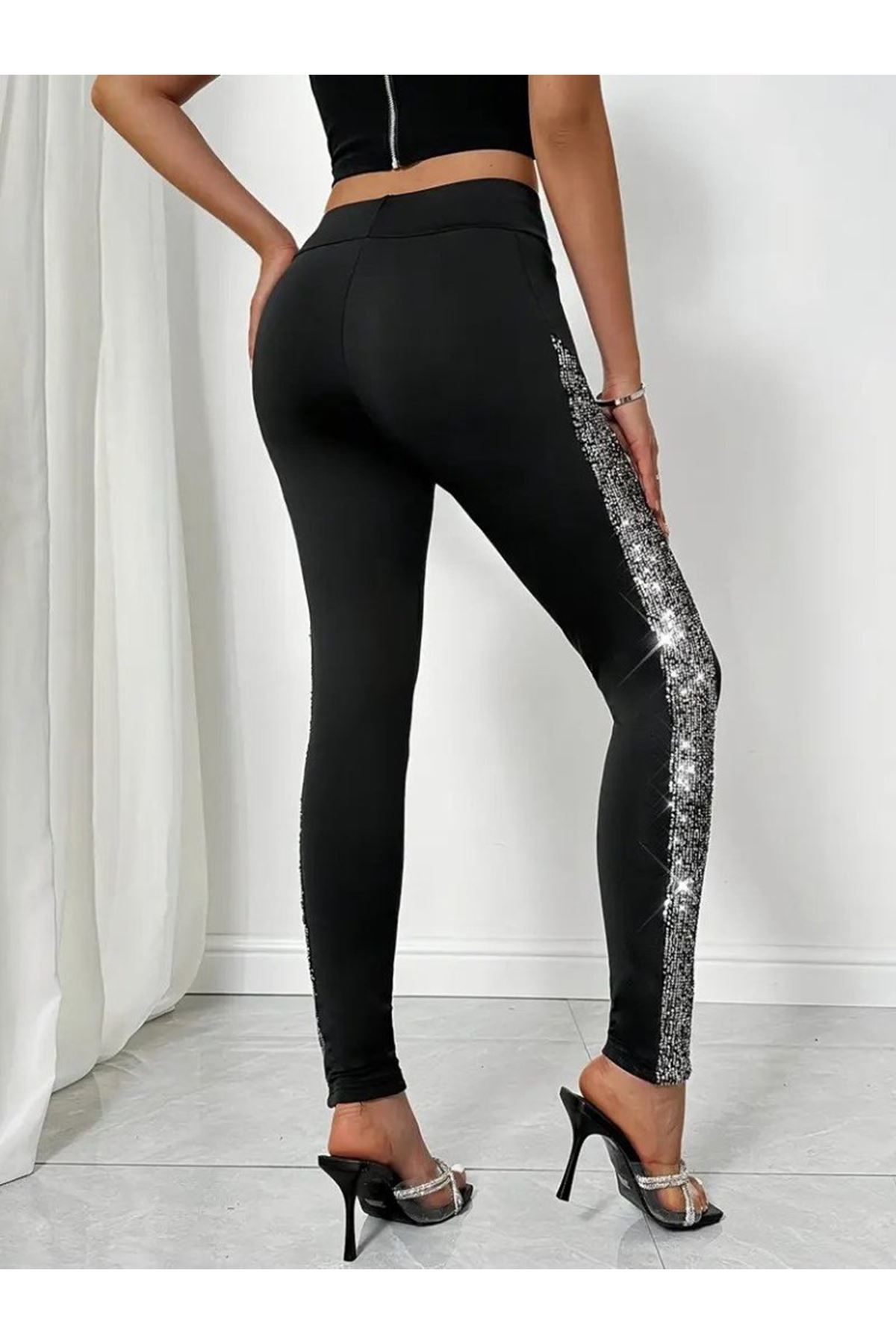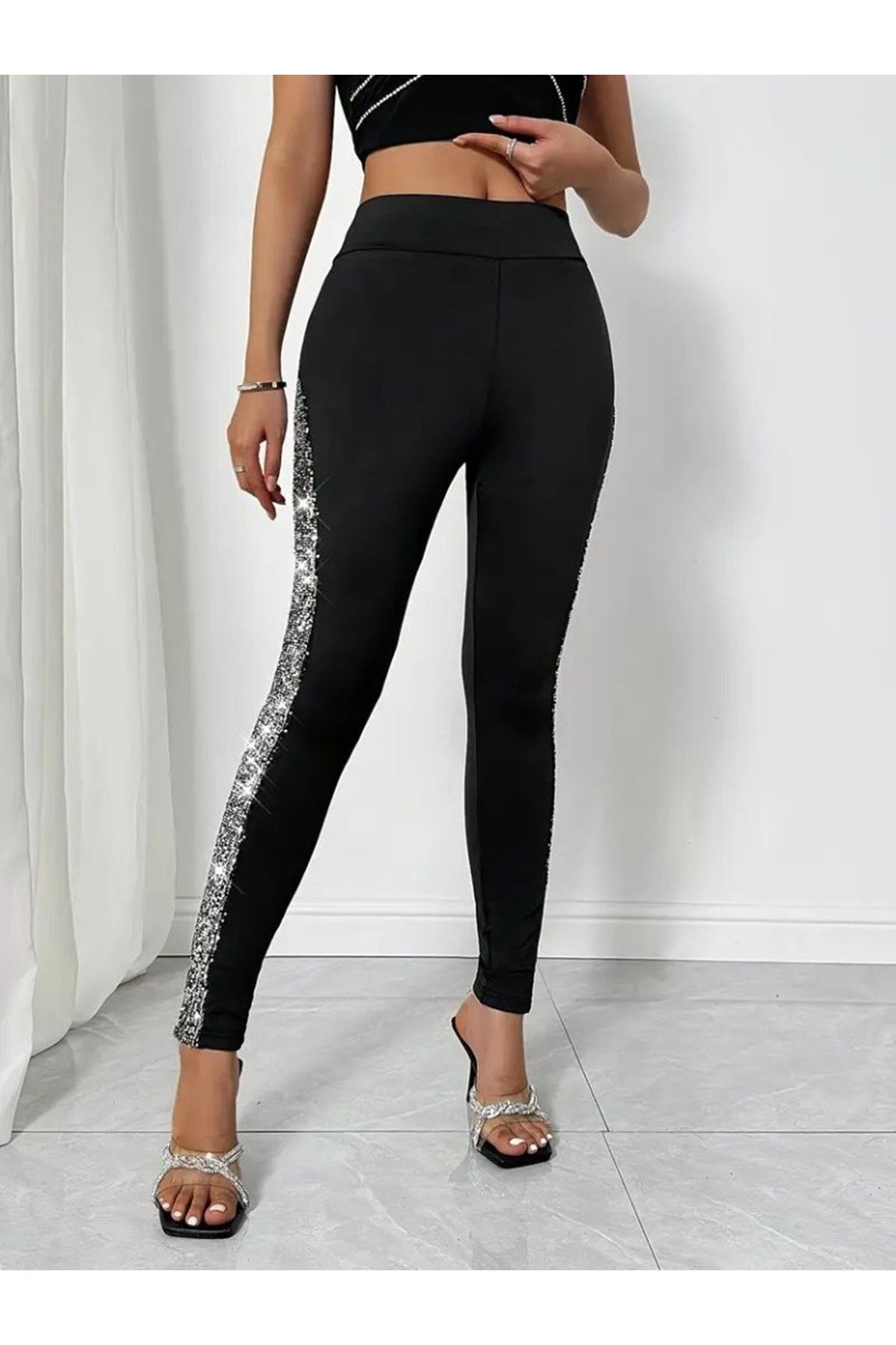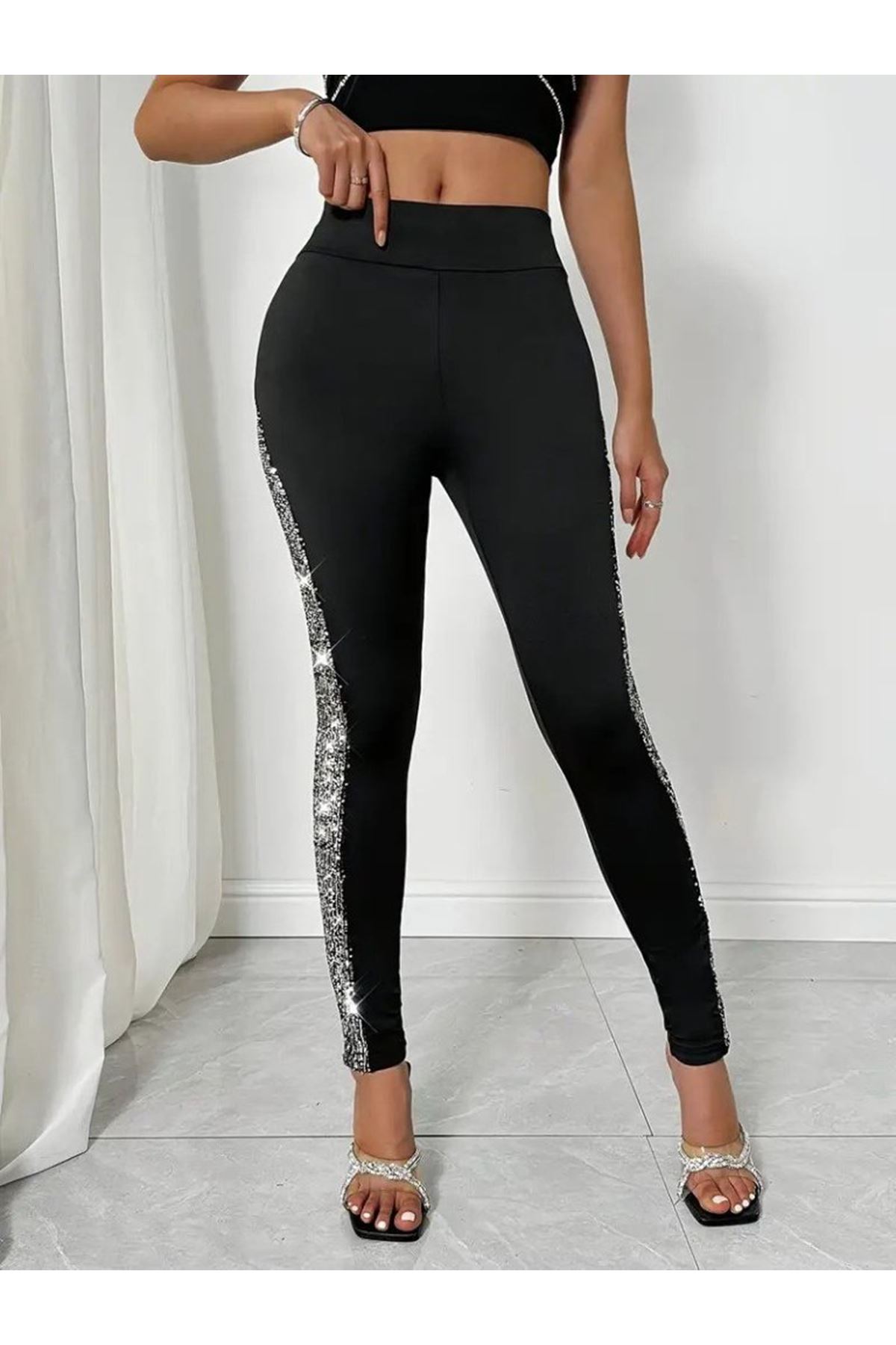 Kadın Yüksek Bel Yarı şerit Pul Payetli Dalgıç Tayt