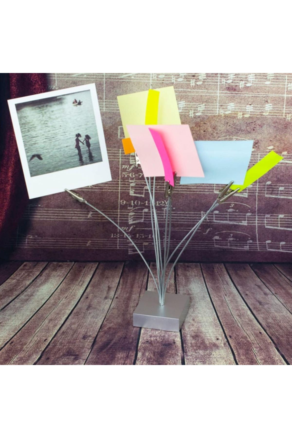 KAĞIT TUTACAĞI KISKAÇLIÜrün Özellikleri Masa düzeninizi korumanın en şık yollarından biri olan Kıskaçlı Kağıt Tutacağı, ofis, çalışma alanı veya resepsiyon masalarında pratik kullanım sağlar. 24x7 cm boyutlarındaki bu ürün, çoklu metal kıskaç sistemiyle notlarınızı, kartvizitlerinizi, fotoğraflarınızı veya önemli belgelerinizi düzenli şekilde sergilemenize imkân tanır. Esnek metal telleri sayesinde farklı yükseklik ve açıları kolayca ayarlayabilir, belgeleri estetik bir biçimde konumlandırabilirsiniz. Sağlam tabanı devrilmeyi önlerken, paslanmaz çelikten üretilmiş kıskaçları uzun ömürlü kullanım sunar. Minimalist ve modern tasarımıyla masa üstü dekorasyonuna da zarif bir dokunuş katar. Paket İçeriği 1 adet Kıskaçlı Kağıt Tutacağı