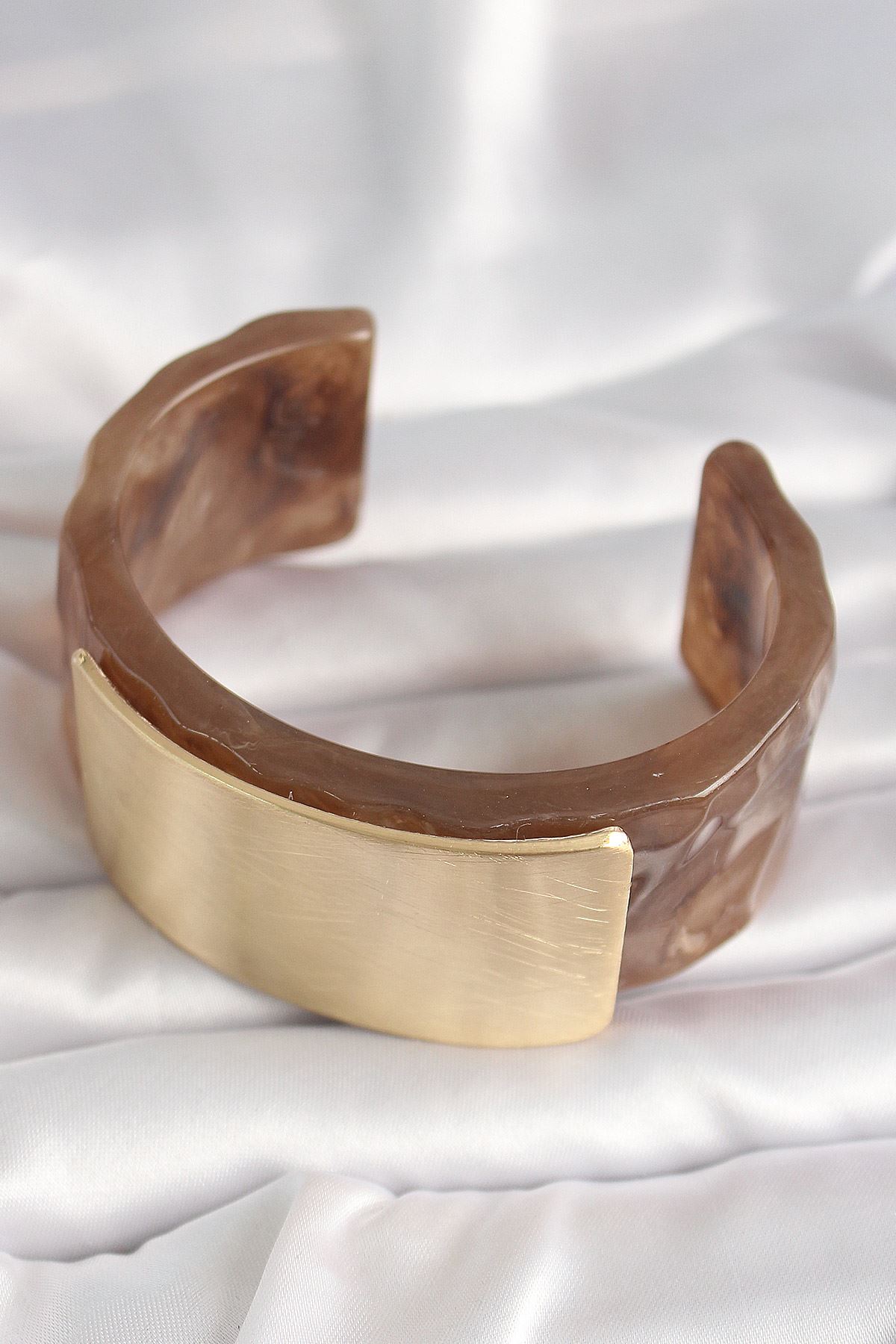 Kahverengi Mermer Desen Akrilik Platik Gold Dikdörtgen Plaka Model Vintage Kadın Bilezik - TJ-BB6686