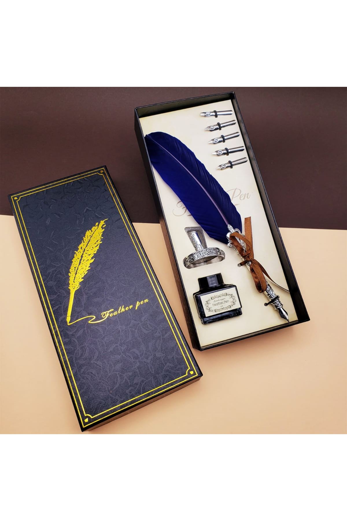 Paket İçeriği:1 Adet Tüylü Kalem1 Adet Kalemlik1 Adet Mürekkep5 Adet Divit Uç