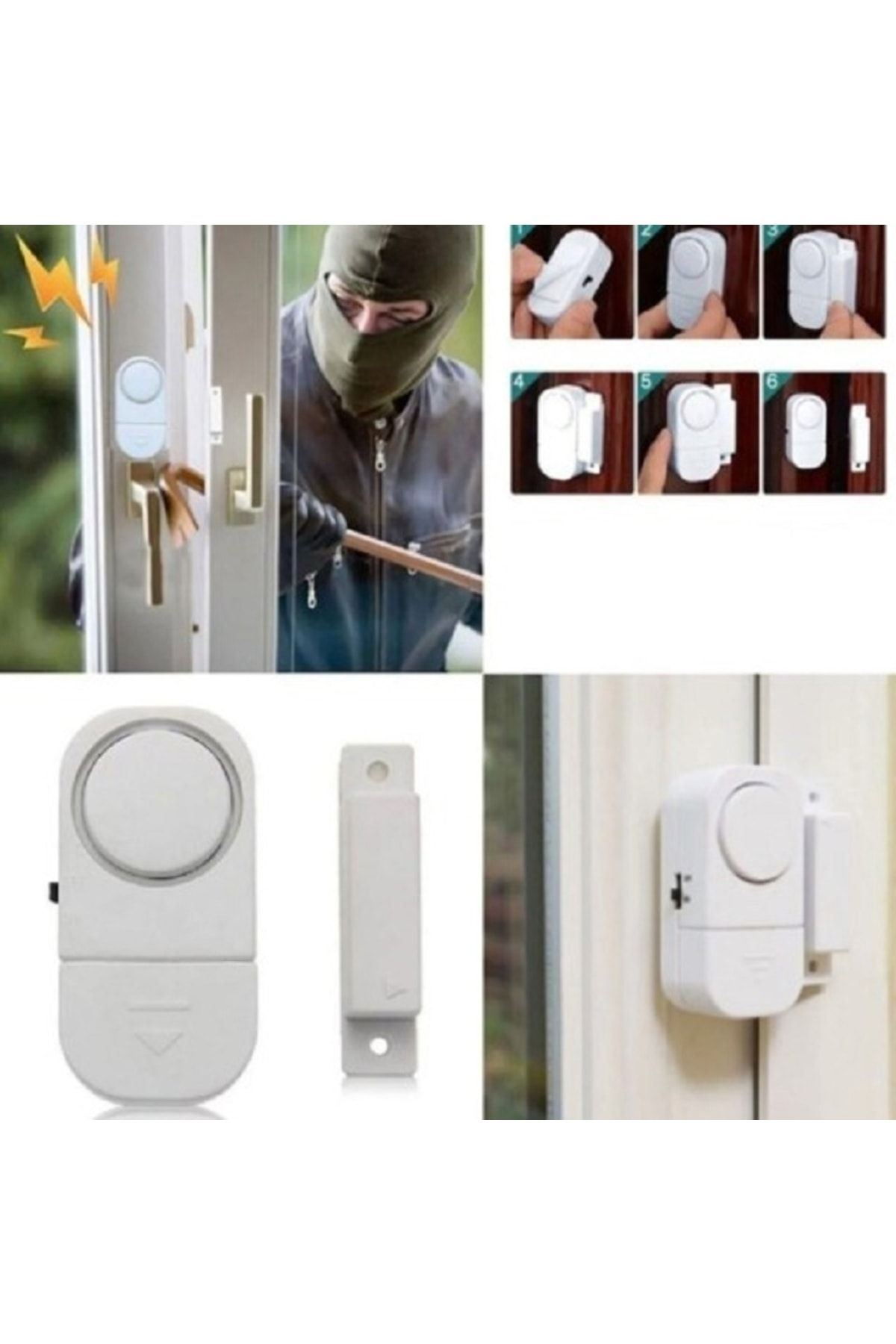Montaj Talimatı:Çift Taraflı Yapışkan Bandı Kullanarak Ana Üniteyi,Kapı Veya Pencerenin Hareketsiz Bölümüne,Diğer Küçük Mıknatısı Da Kapı Veya Pencerenin Açılabilir Kanadı ÜzerineMıknatıslar Birbirine Bakacak Ve Aradaki Boşluk 6-7 Mm Yi Geçmeyecek Şekilde Yapıştırın.Açma Kapama Anahtarı On Konumuna Getirip O Şekilde Bırakın.Kapı Veya Pencere Açıldığında Otomatik Olarak 90 Db Şiddetinde Sesle Uyarı Verecektir.Pil Değişimi: Piller Takılı Halde Gelecektir.Pil Yuvasına Lr44 Yeni Pili (+) (-) Kutuplarına Dikkat Ederek Yerleştirip Kapağını Kapatın.