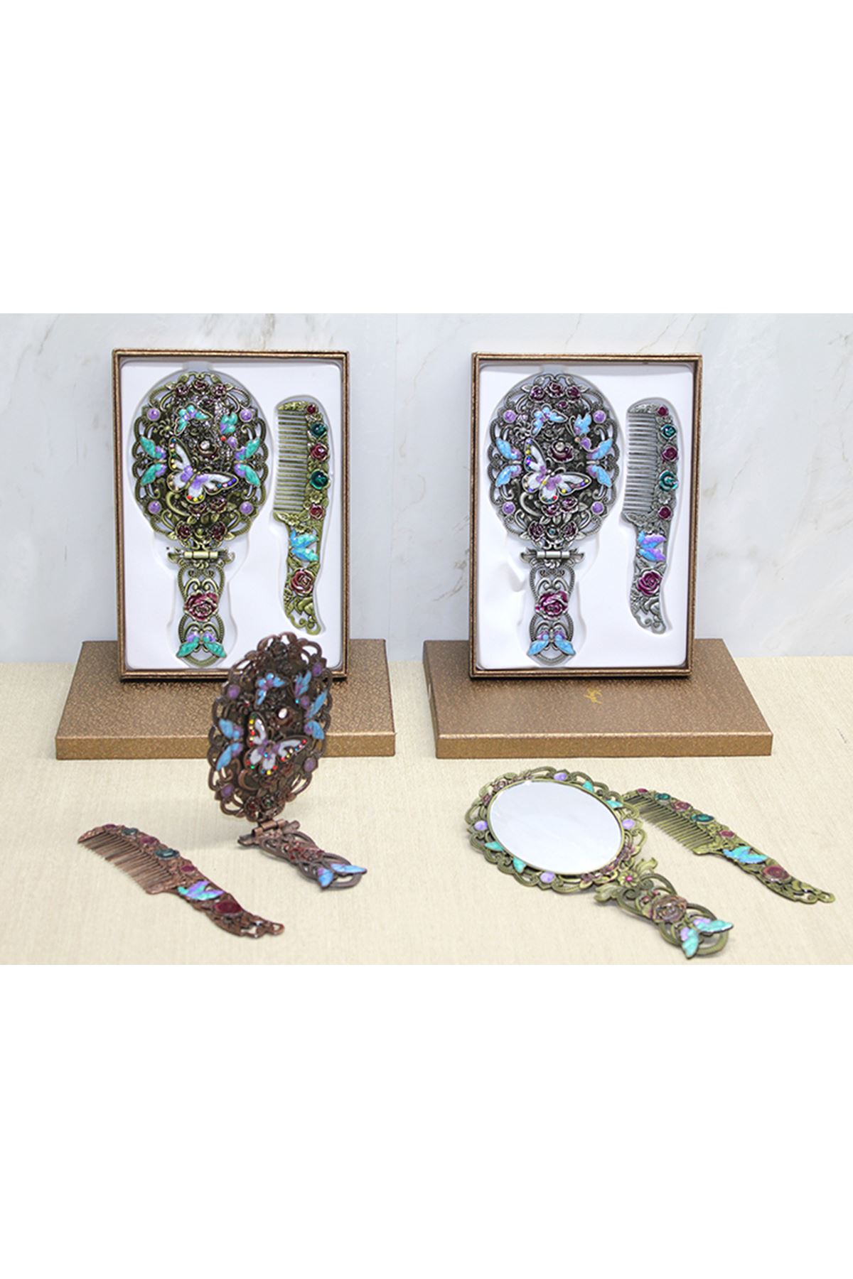 Kelebek Katlanabilir Ayna Ve Tarak Seti Büyük Boy