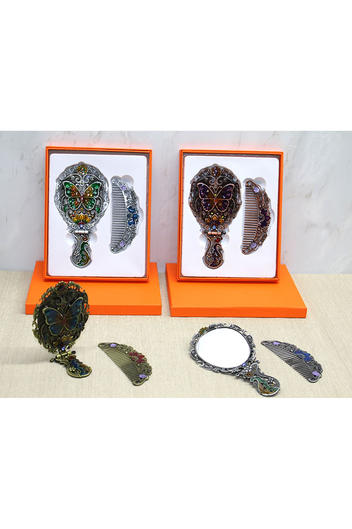 Kelebek Katlanabilir Ayna Ve Tarak Seti Orta Boy
