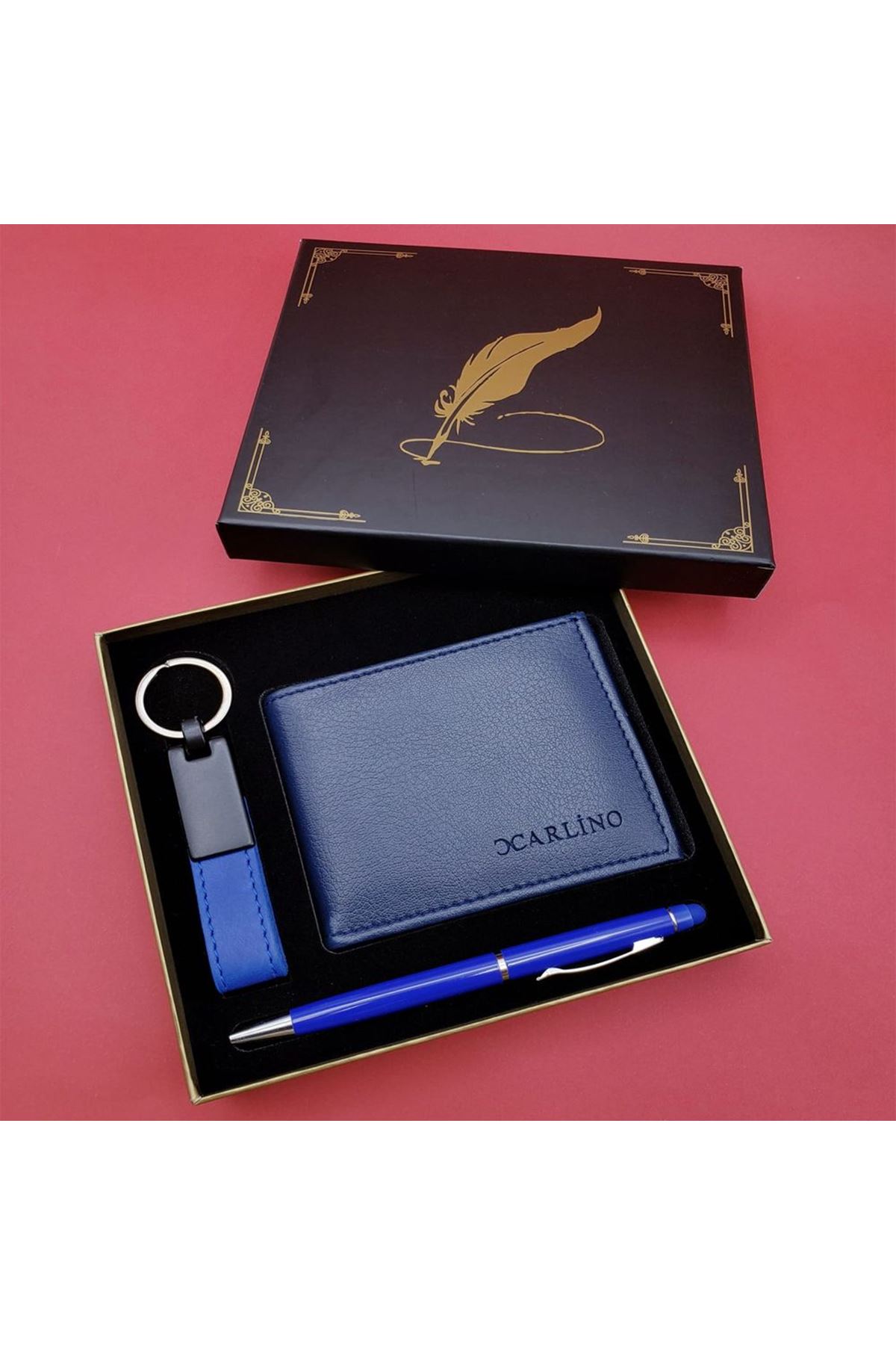 Mavi Cüzdan Anahtarlık Ve Kalem