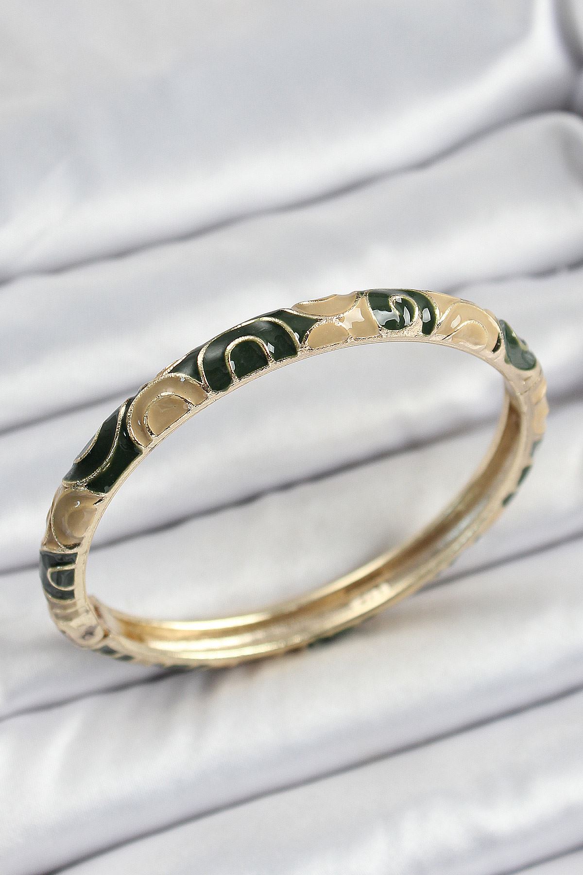 Mineli Pirinç Siyah ve Kahverengi Motifli Kadın Kelepçe - TJ-BB7170