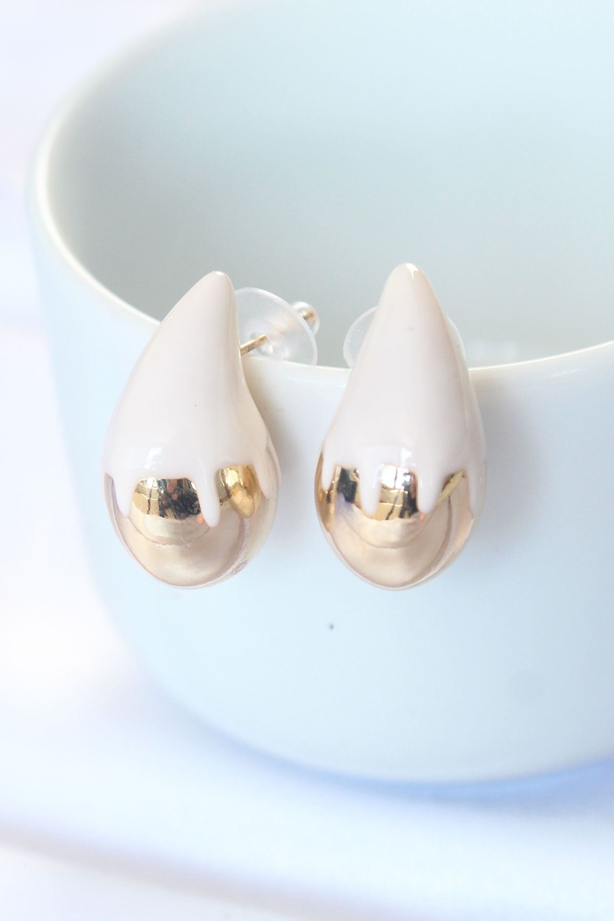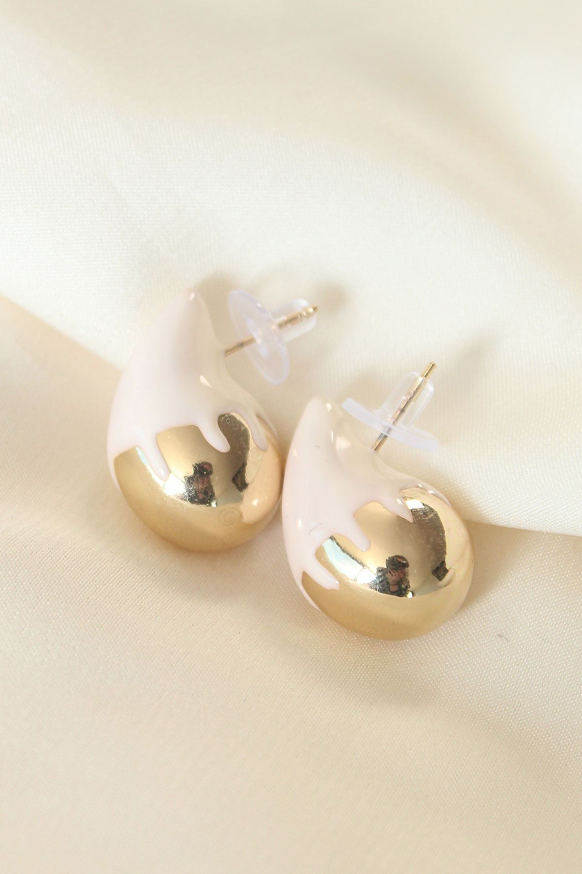 Minimal Beyaz Mineli Çift Renk Damla Küpe - TJ-BKP8866