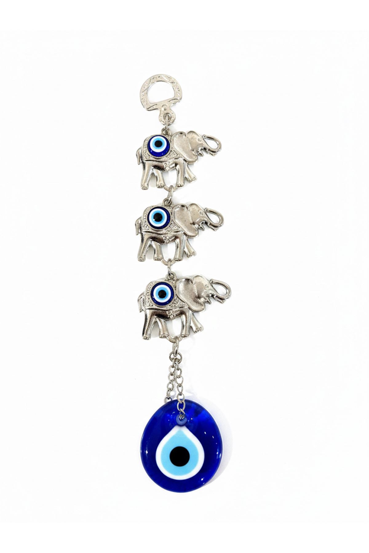 NAZAR BONCUĞU 3’LÜ FİL ASKILIK Ürün Özellikleri Nazar Boncuğu 3’lü Fil Askılık, üç adet fil figürü ve büyük nazar boncuğunun bir araya geldiği dekoratif bir tasarımdır. Fil figürü kültürel olarak şans, güç, dayanıklılık ve bereketi temsil ederken, nazar boncuğu ise kötü enerjilere karşı koruyucu bir sembol olarak bilinir. Bu iki anlamlı motifin birleşimi yaşam alanlarına hem estetik hem de sembolik değer kazandırır. Metal malzemesi sayesinde dayanıklı ve uzun süre kullanıma uygundur. Kapı girişine, duvarlara, araç içine veya ofis masasına asarak dekoratif bir görünüm elde edebilirsiniz. Üçlü fil tasarımı, bolluğun artması ve bereketin çoğalması anlamını taşır; bu nedenle ev hediyesi, işyeri açılışı veya özel günler için zarif ve anlamlı bir hediye seçeneğidir. Geleneksel mavi nazar boncuğu detayları bulunduğu ortama renk katar ve dikkat çekici bir görünüm sağlar. Paket İçeriği 1 Adet Nazar Boncuğu 3’lü Fil Askılık