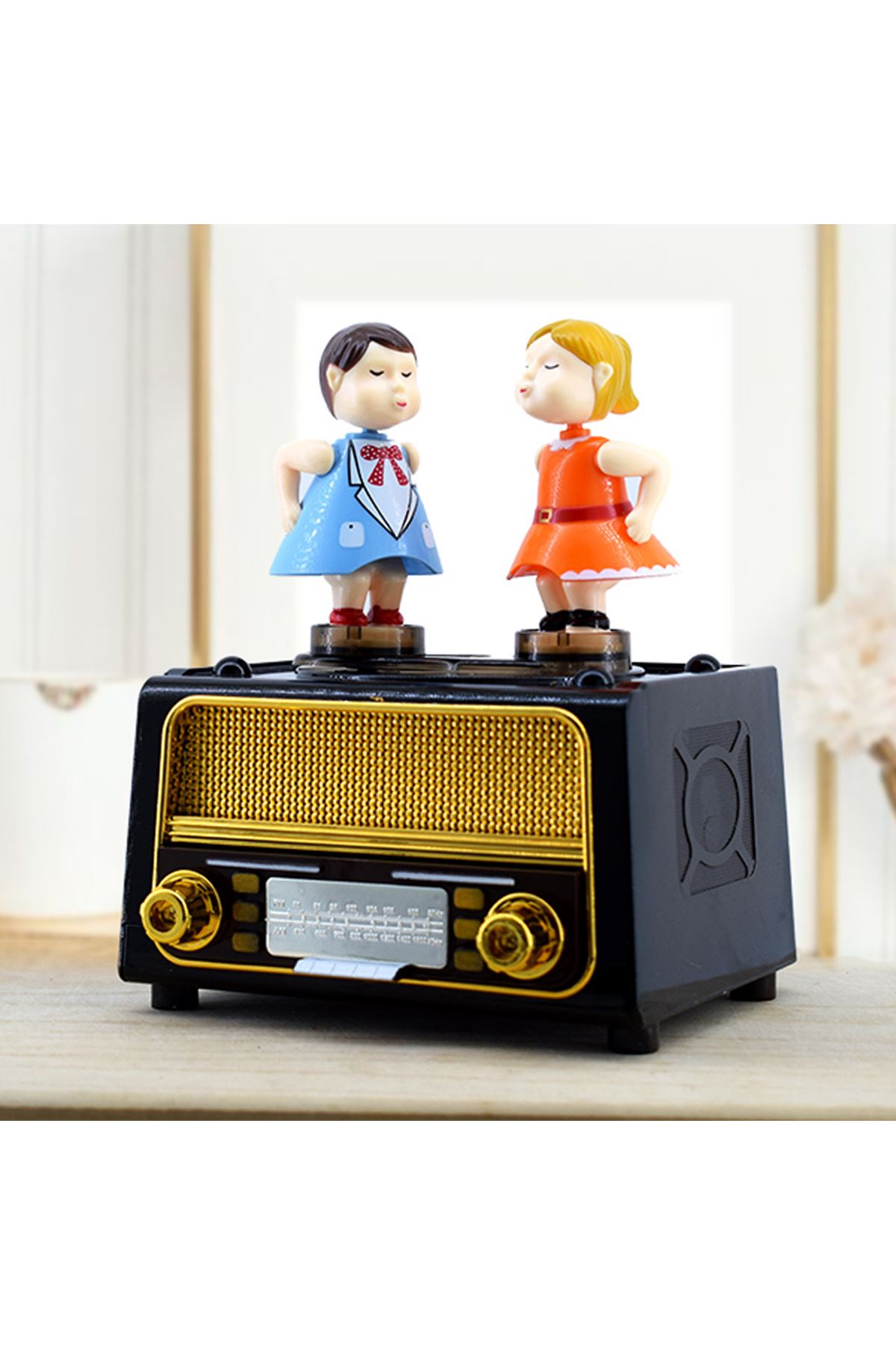 Nostaljik Radyo Tasarımlı Müzik Kutusunun Üzerinde Bulunan Öpüşen Sevgililer İle Müzik Kutusu Daha Hoş Bir Hale Geliyor. Radyo Şeklinde Müzik Kutusu Görünümü Ve Şık Tasarımı İle İlgi Çekmektedir.Sevdiğiniz Kişilere Vereceğiniz Anlamlı Hediyelerden Olan Müzik Kutusu İle Sevdiğiniz Kişilere Anlamlı Hediye.Müzik Kutusunu Çalıştırdığınız Zaman Öpüşen Çiftler Dönmeye Başlar.