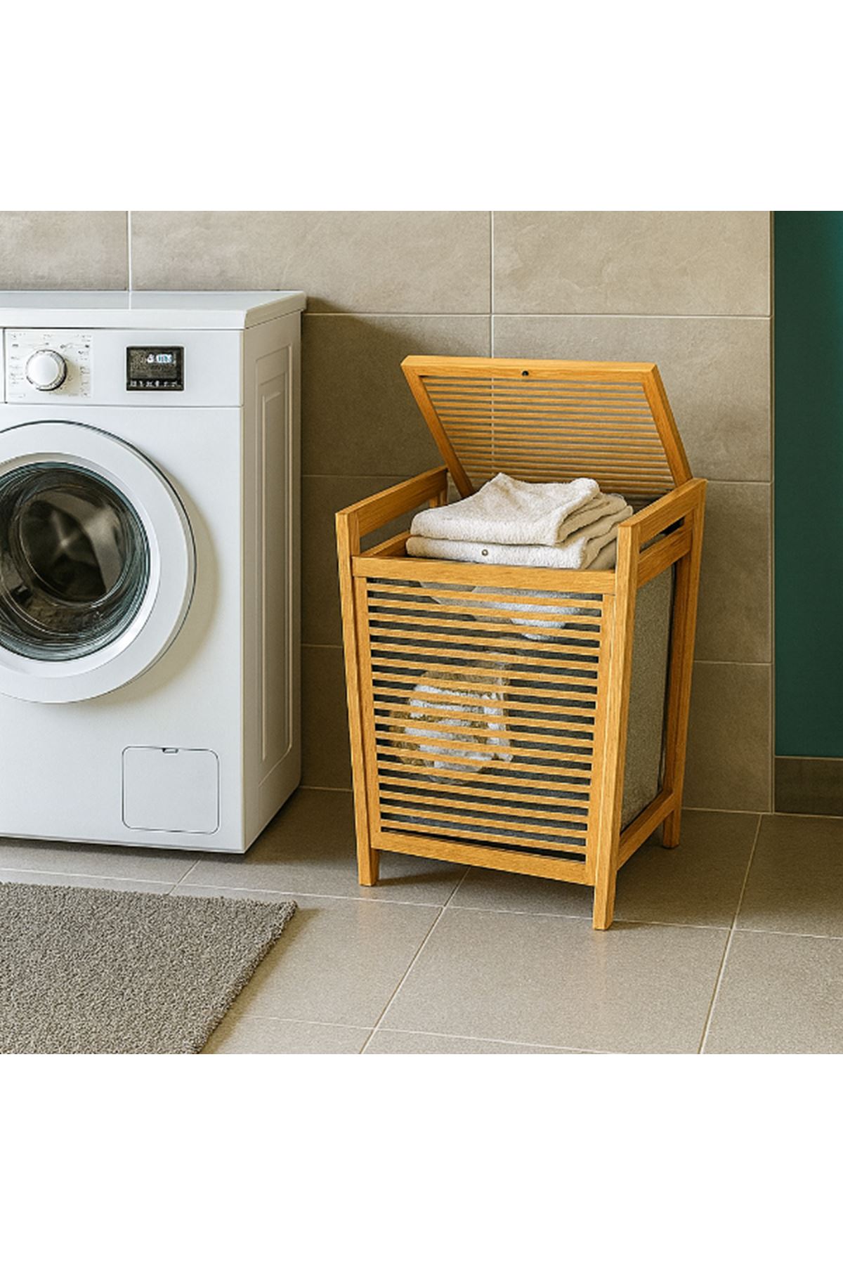 Orta Boy Ahşap Bambu Kirli Sepeti 40x35x60