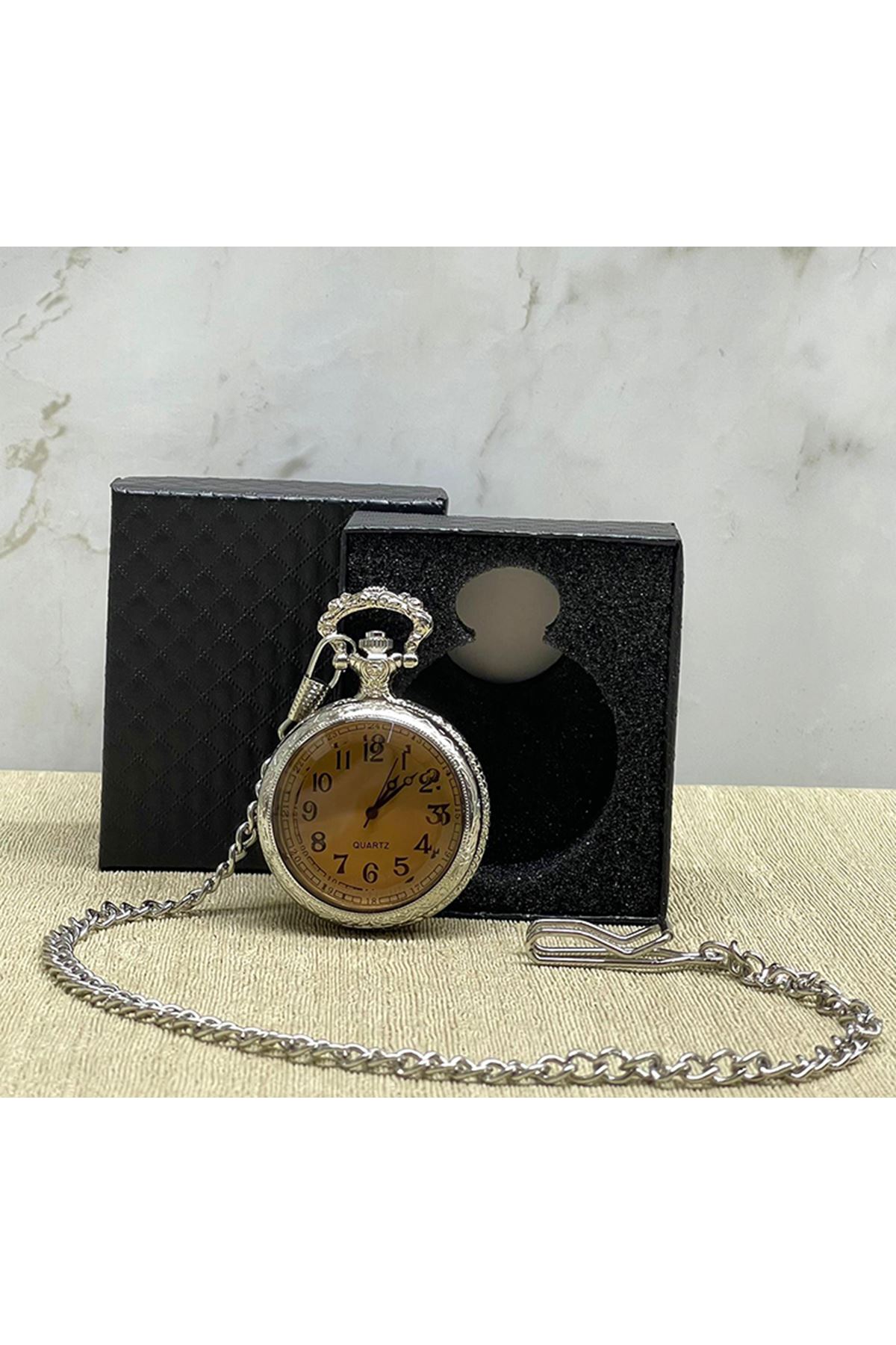 ÖZEL KUTULU CAMLI GÜMÜŞ KÖSTEKLİ SAAT Ürün Özellikleri Özel kutulu camlı gümüş köstekli saat, klasik şıklığı ve zarif tasarımıyla dikkat çeken bir modeldir. 4x5 cm boyutunda olan bu köstekli saat, camlı ön yüzü sayesinde zamanı net bir şekilde gösterirken, gümüş renkli gövdesi ile nostaljik bir hava sunar. Dayanıklı metal yapısı uzun süreli kullanım sağlarken, zinciri ile birlikte pratik kullanım imkânı sunar. Özel kutusunda sunulması sayesinde hem koleksiyonluk hem de hediye alternatifi olarak tercih edilebilir. Paket İçeriği 1 adet Özel Kutulu Camlı Gümüş Köstekli Saat