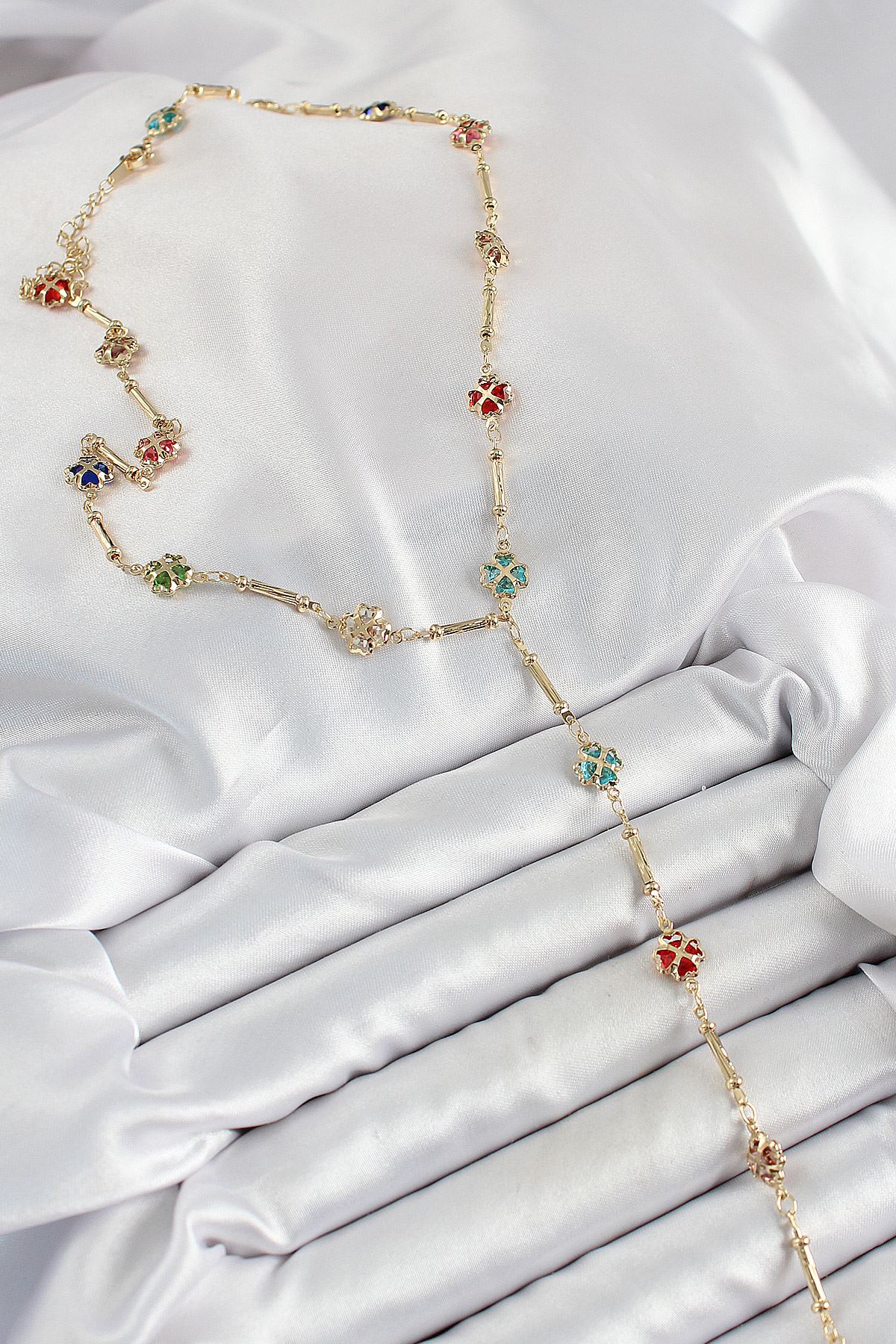 Pirinç Asorti Model Gold Renk Zirkon Taşlı Y Kolye - TJ-BKO10251