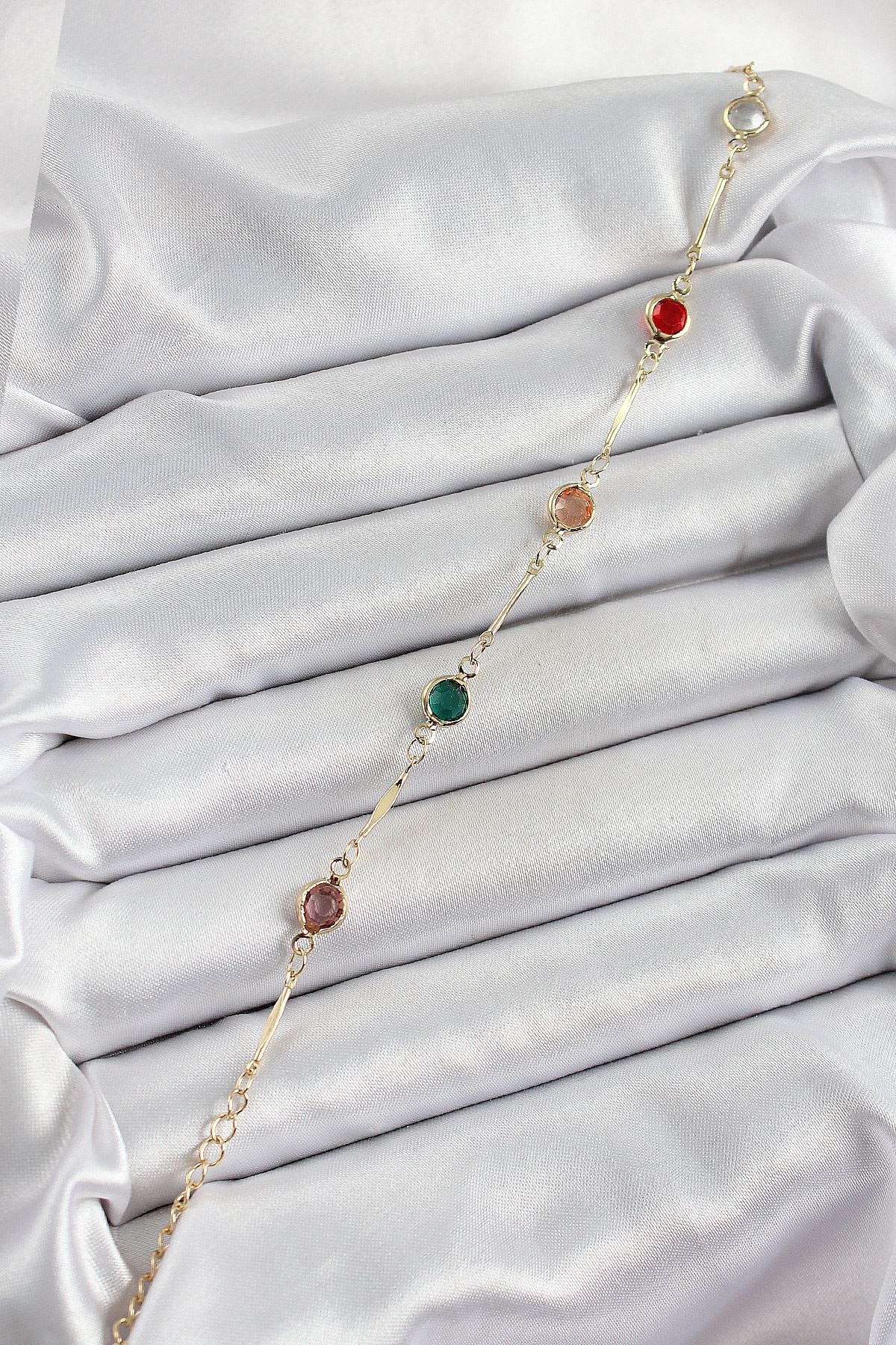 Pirinç Asorti Model Gold Renk Zirkon Taşlı Kadın Bileklik - TJ-BB7038