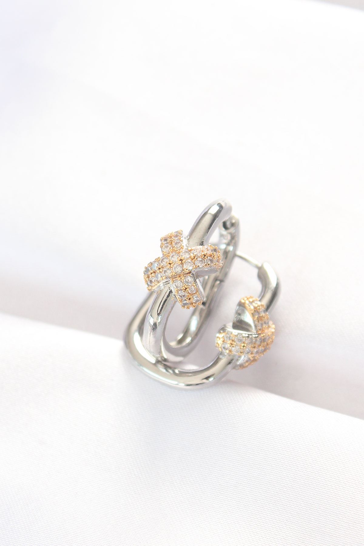 Pirinç Çift Renk Taşlı X Tasarımlı Dikdörtgen Küpe - TJ-BKP8891