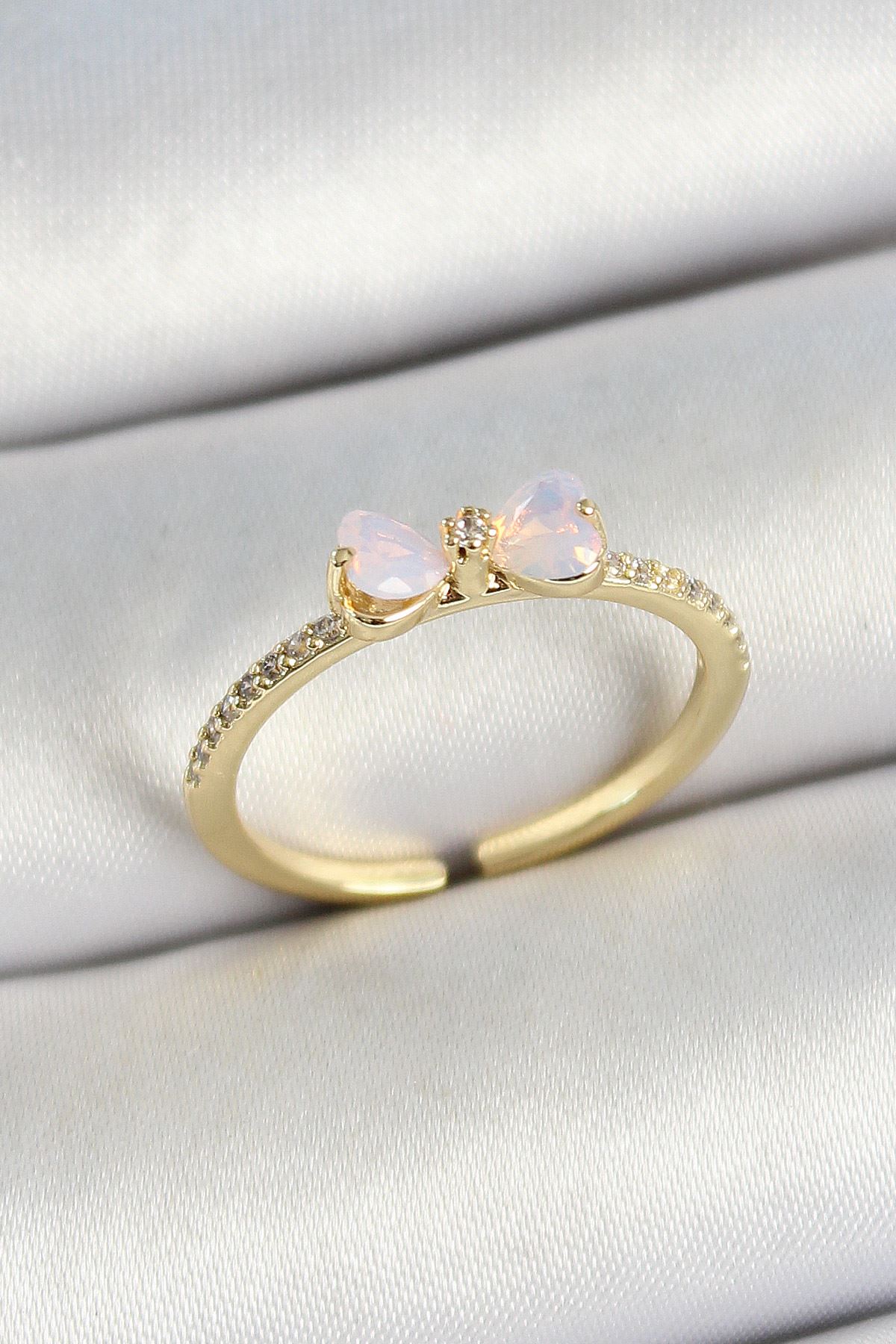 Pirinç Fiyonk Figürlü Zirkon Taşlı Gold Renk Ayarlanabilir Kadın Yüzük - TJ-BYK3772