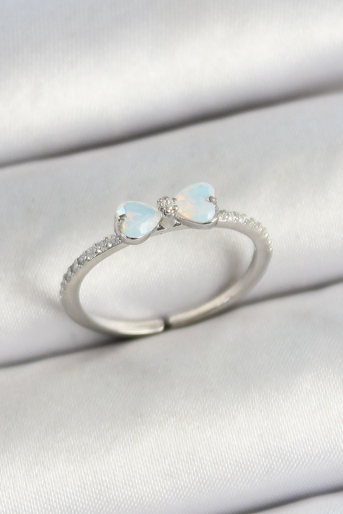Pirinç Fiyonk Figürlü Zirkon Taşlı Gümüş Renk Ayarlanabilir Kadın Yüzük - TJ-BYK3765