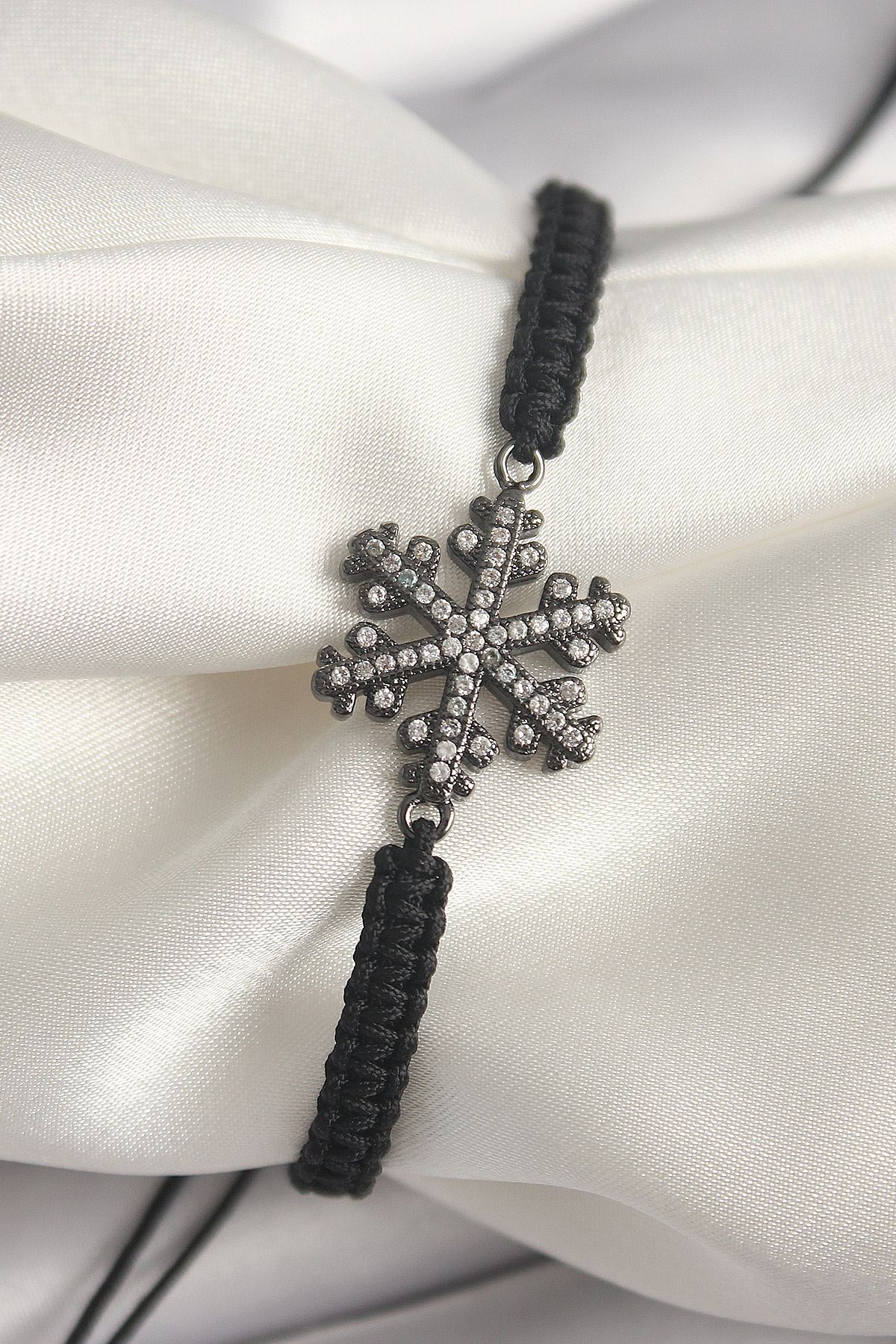 Pirinç Füme Renk Zirkon Taşlı Kar Tanesi Figür Makrome Asansörlü Model Kadın Bileklik - TJ-BB6791