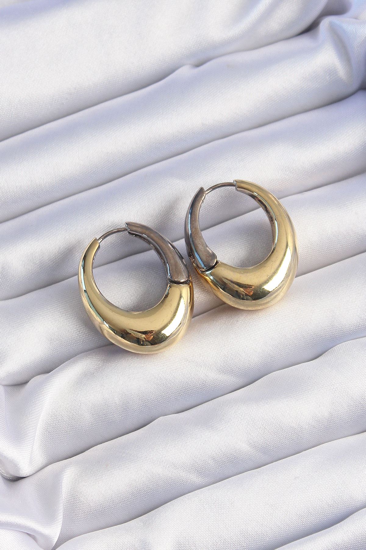 Pirinç Gold Gümüş Renkli Oval Bombeli Küpe - TJ-BKP9221
