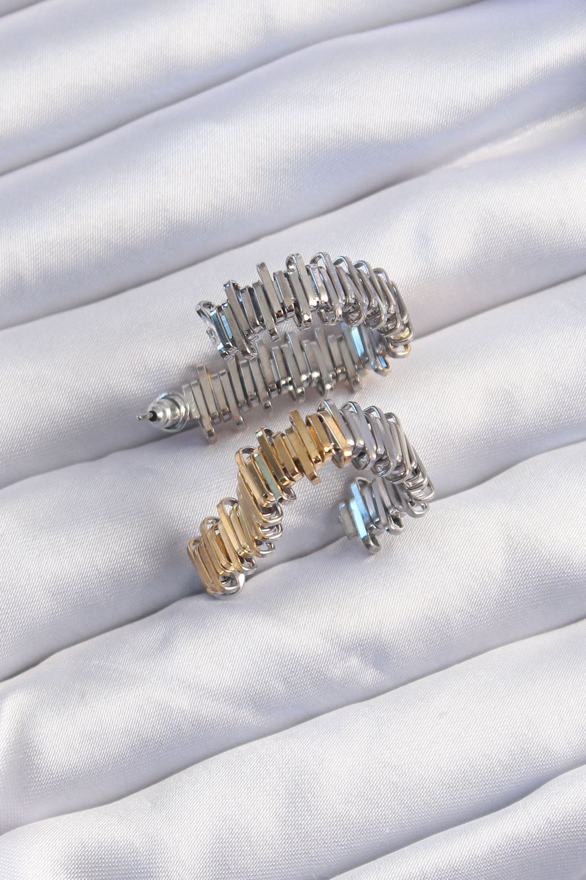 Pirinç Gold Gümüş Renkli Tırtıklı Kalp Küpe - TJ-BKP9227