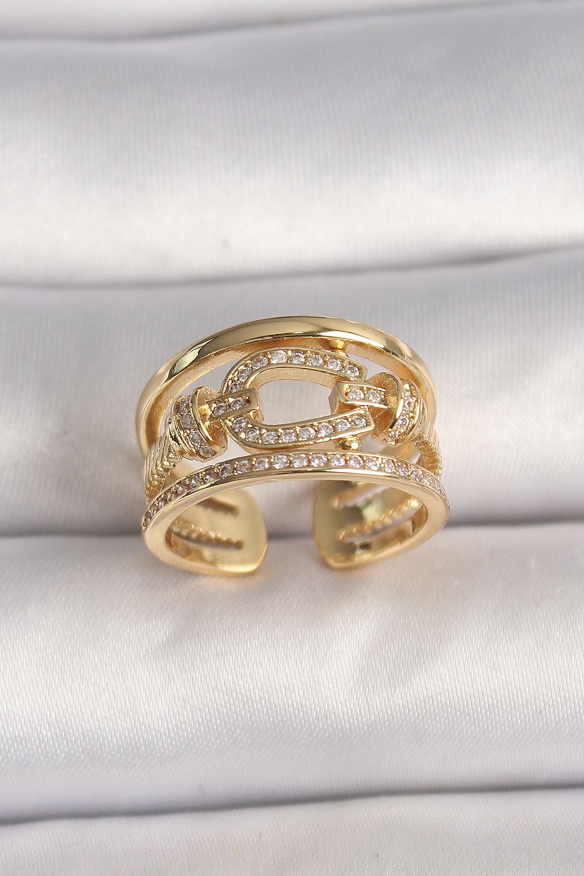 Pirinç Gold Renk Ayarlanabilir Zirkon Taşlı Gemici Düğümü Model Kadın Yüzük - TJ-BYK3605