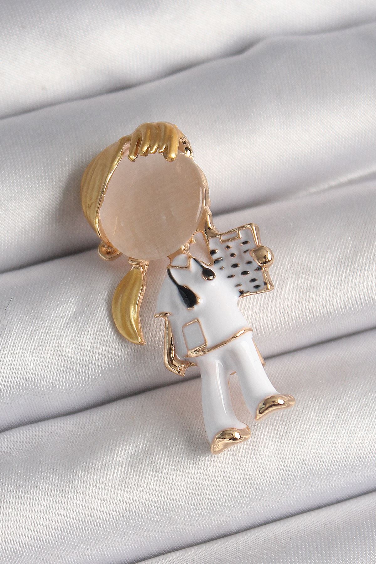 Pirinç Gold Renk Beyaz Mineli Doktor Model Kadın Broş - TJ-BR406