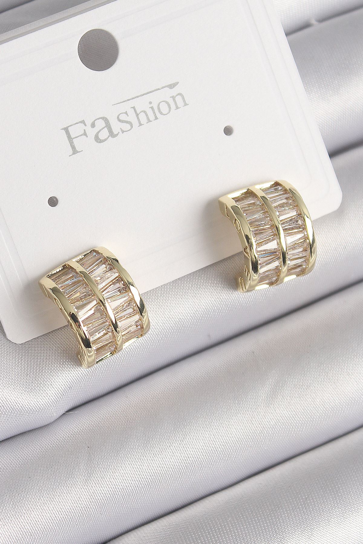 Pirinç Gold Renk Çift Sıra Zirkon Taşlı Kadın Küpe - TJ-BKP9756