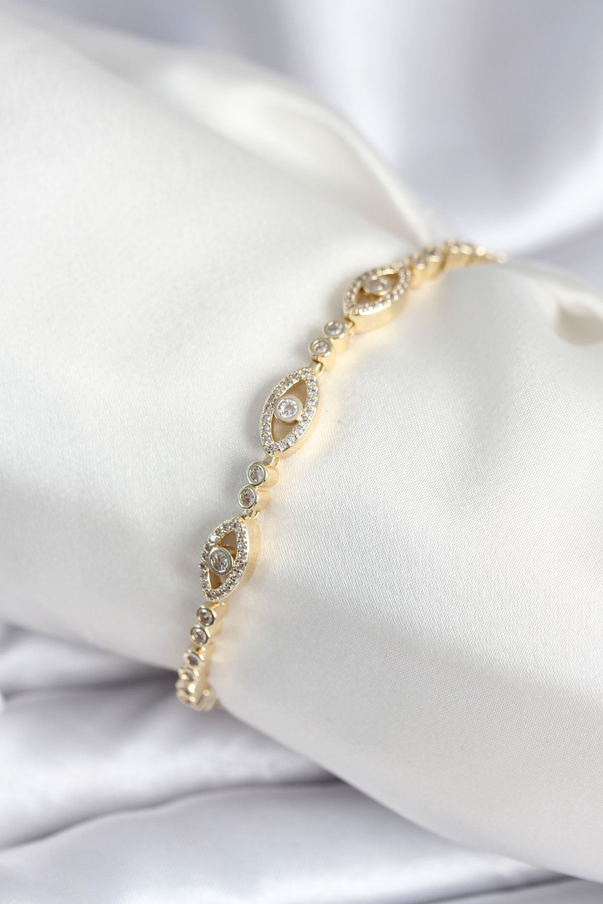 Pirinç Gold Renk Göz Model Kadın Bileklik - TJ-BB7965