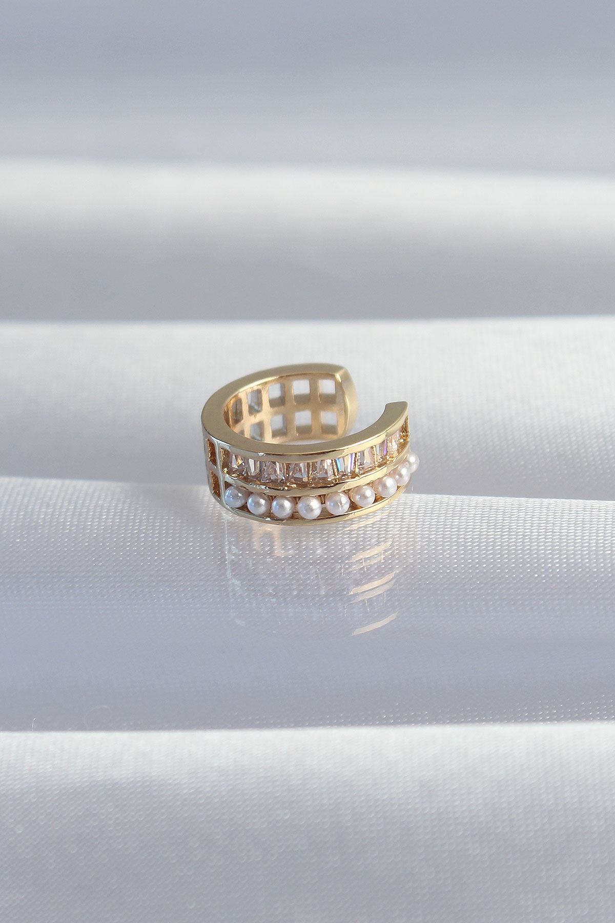 Pirinç Gold Renk İncili Baget Taşlı Earcuff Küpe - TJ-BKP9339
