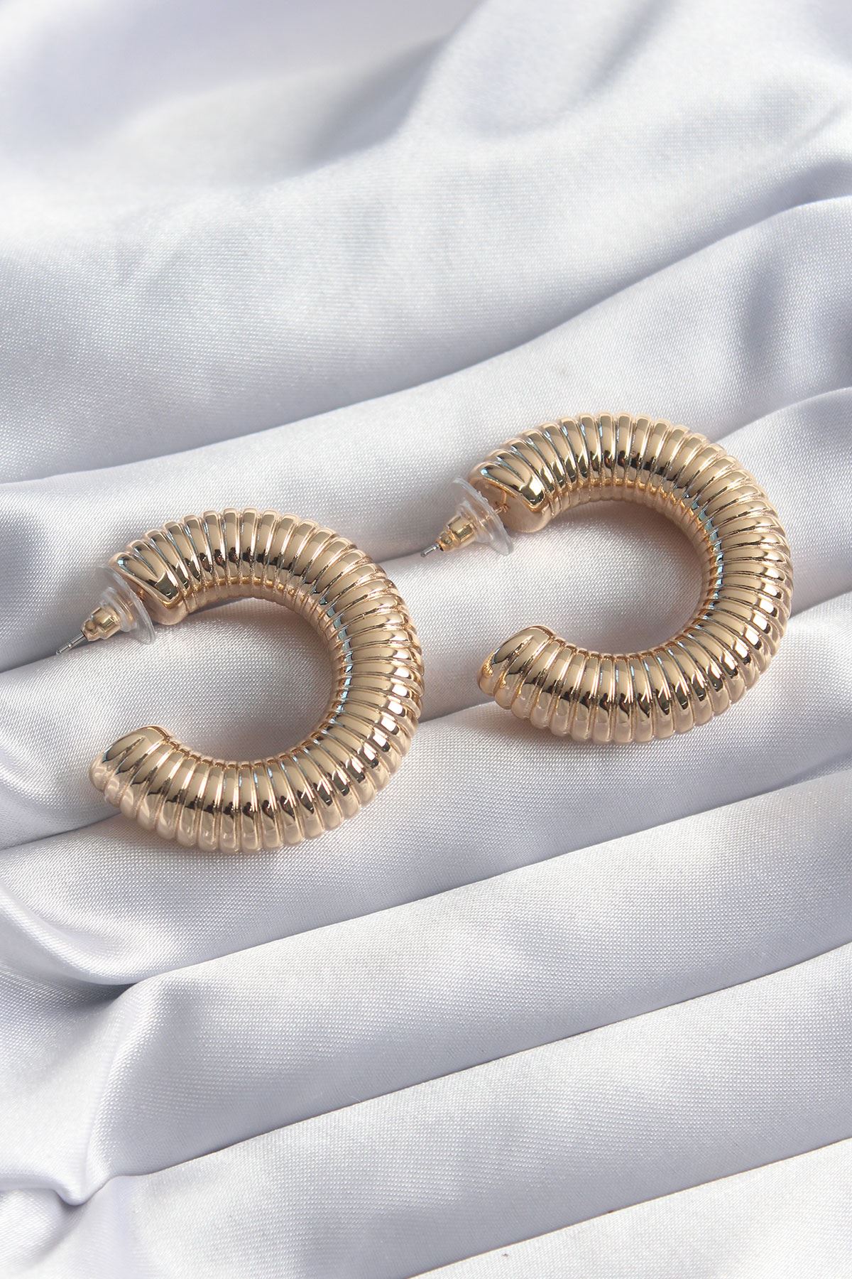 Pirinç Gold Renk İşleme Detay Halka Model Kadın Küpe - TJ-BKP8244