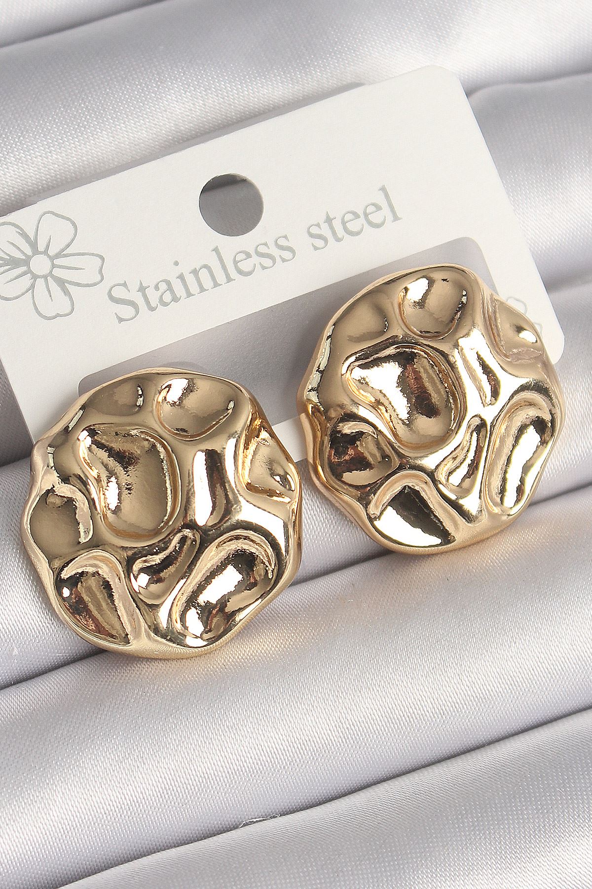 Pirinç Gold Renk İşlemeli Daire Plaka Model Kadın Küpe - TJ-BKP10243