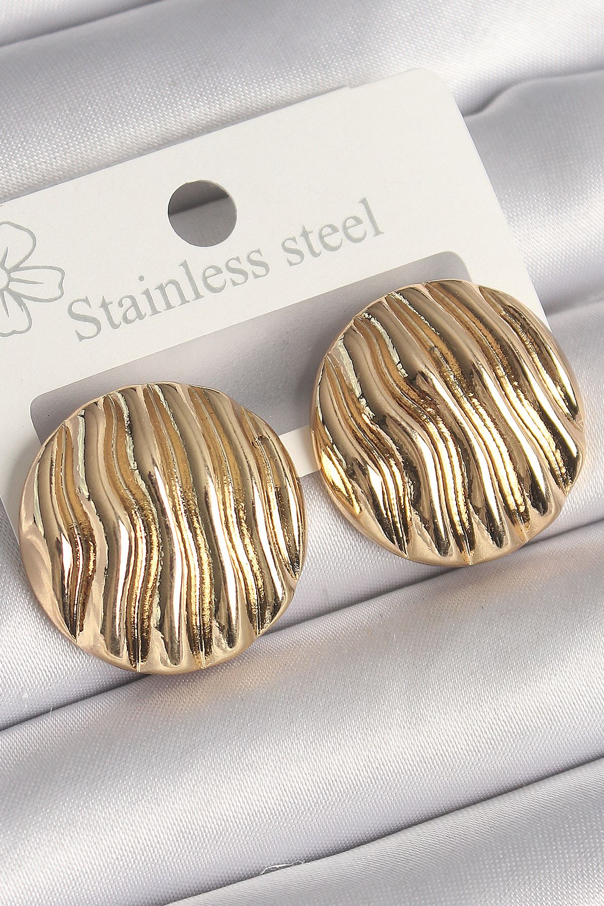 Pirinç Gold Renk İşlemeli Daire Plaka Model Kadın Küpe - TJ-BKP10256