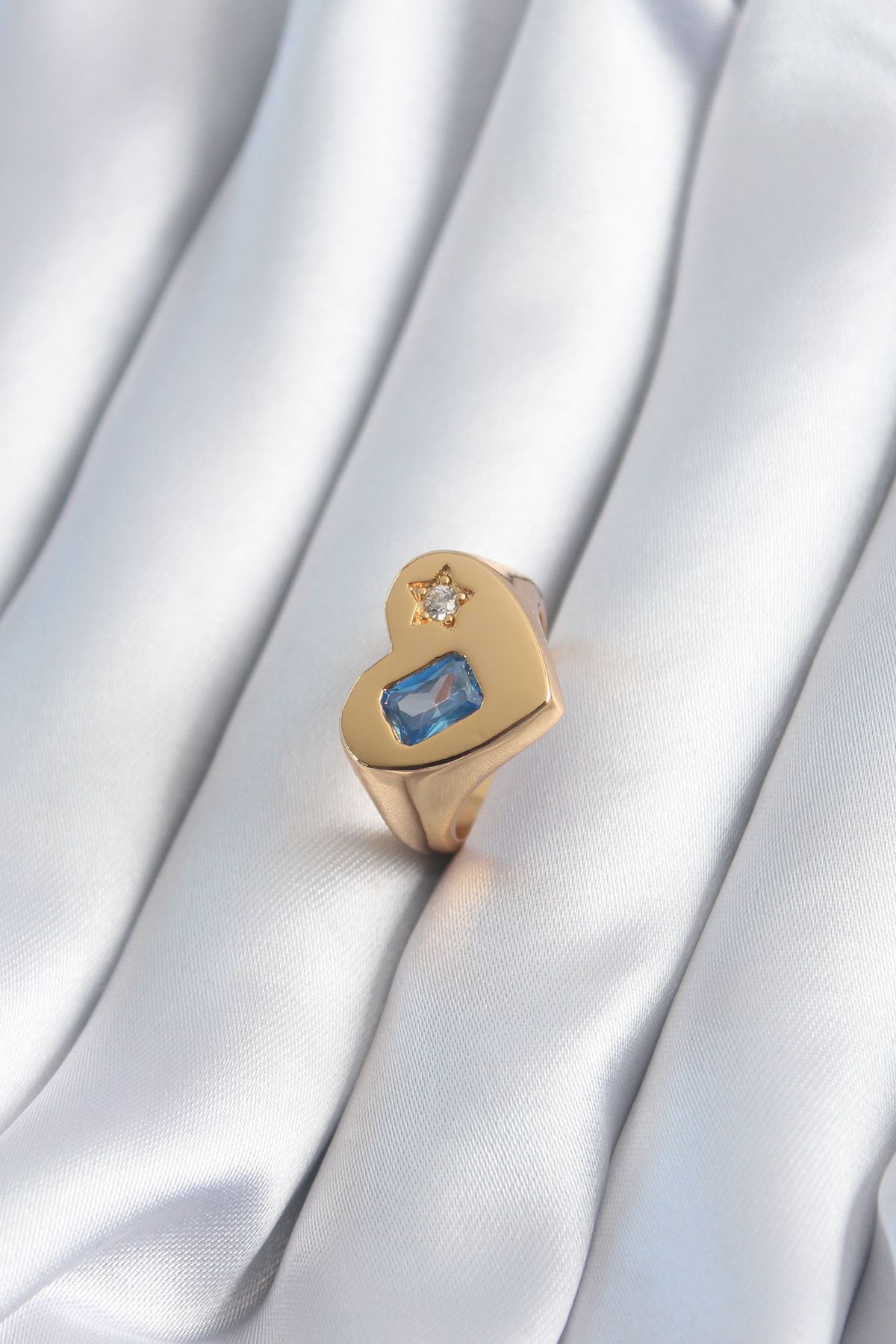 Pirinç Gold Renk Kalp Model Zirkon Taş Yıldız Detay Kadın Yüzük - TJ-BYK2895