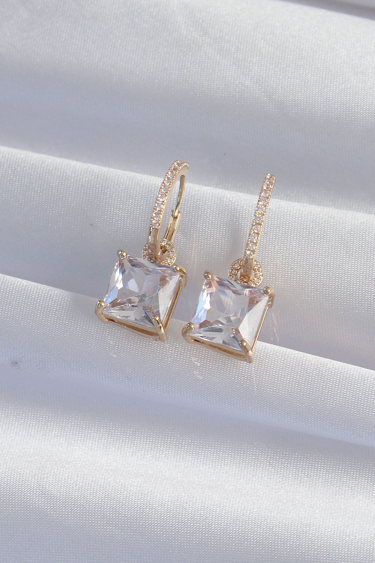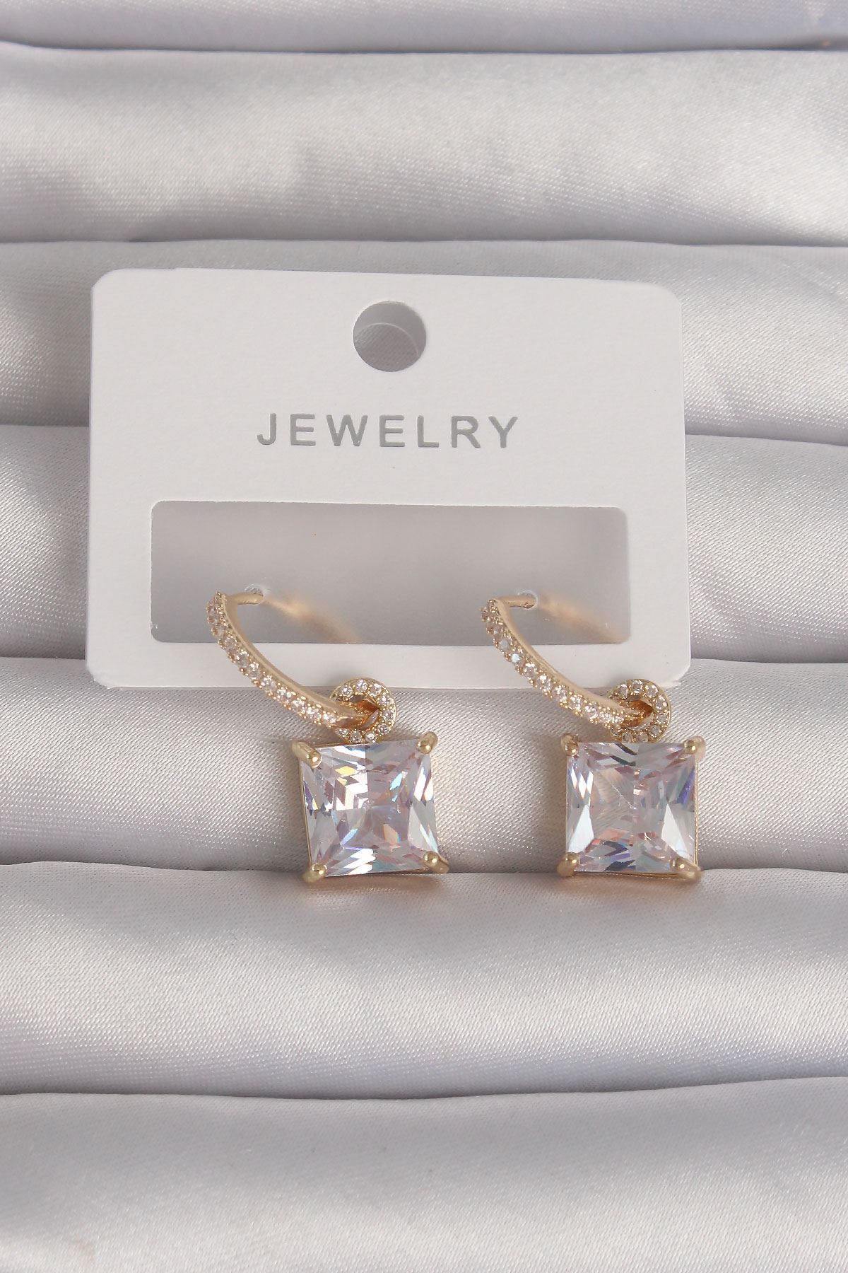 Pirinç Gold Renk Kare Zirkon Taşlı Halka Küpe - TJ-BKP9295