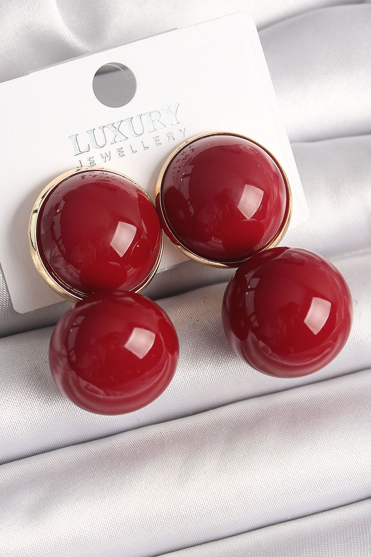 Pirinç Gold Renk Kırmızı Boncuk Model Kadın Küpe - TJ-BKP10361