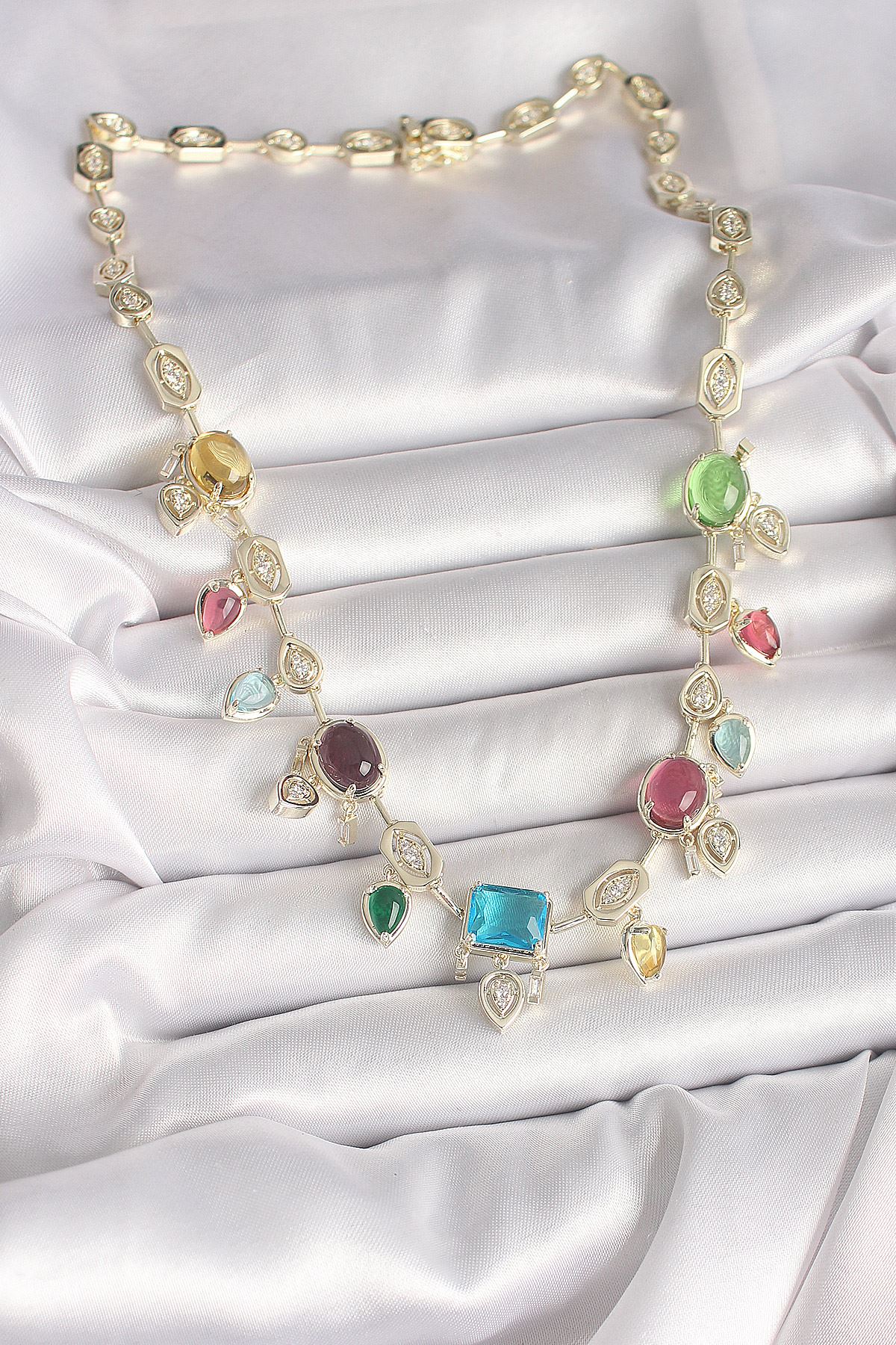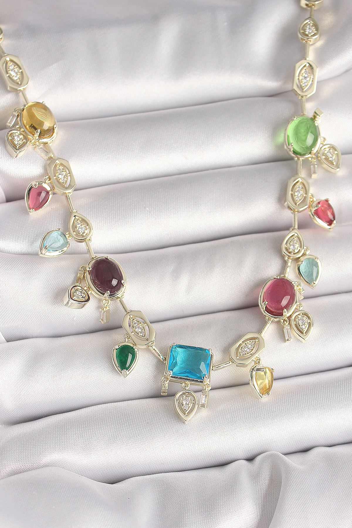 Pirinç Gold Renk Renli Zirkon Taşlı VIP Seri Kadın Kolye - TJ-BKO10004