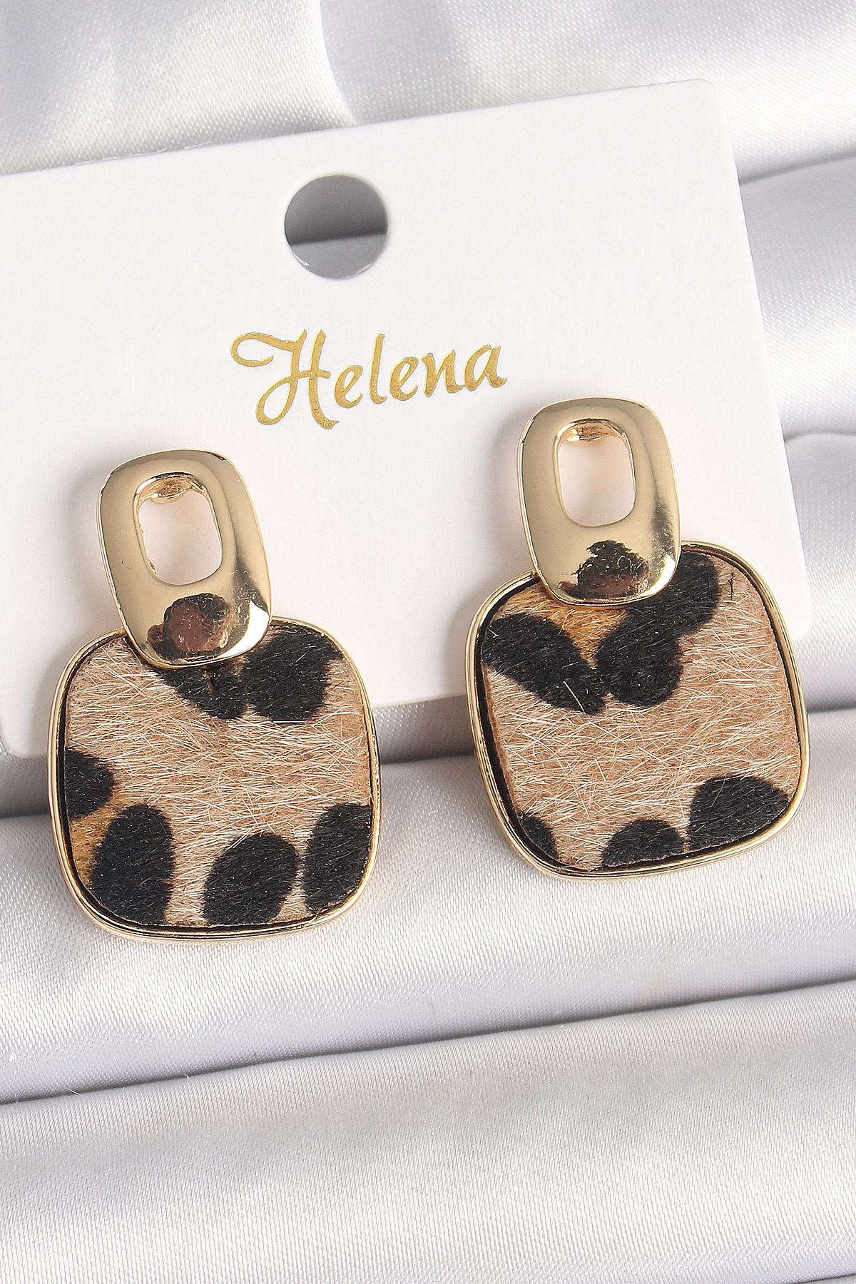 Pirinç Gold Renk Sallantı Kare Leopar Model Kadın Küpe - TJ-BKP10338