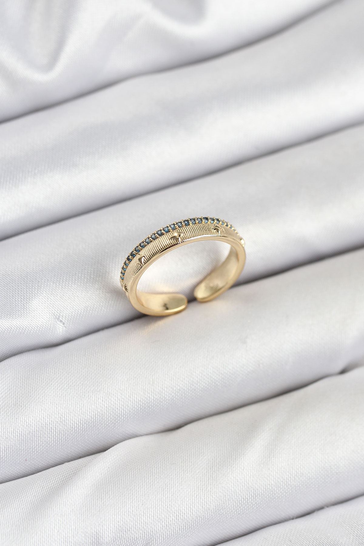 Pirinç Gold Renk Zirkon Taşlı Ay Yıldız Kadın Yüzük - TJ-BYK3860