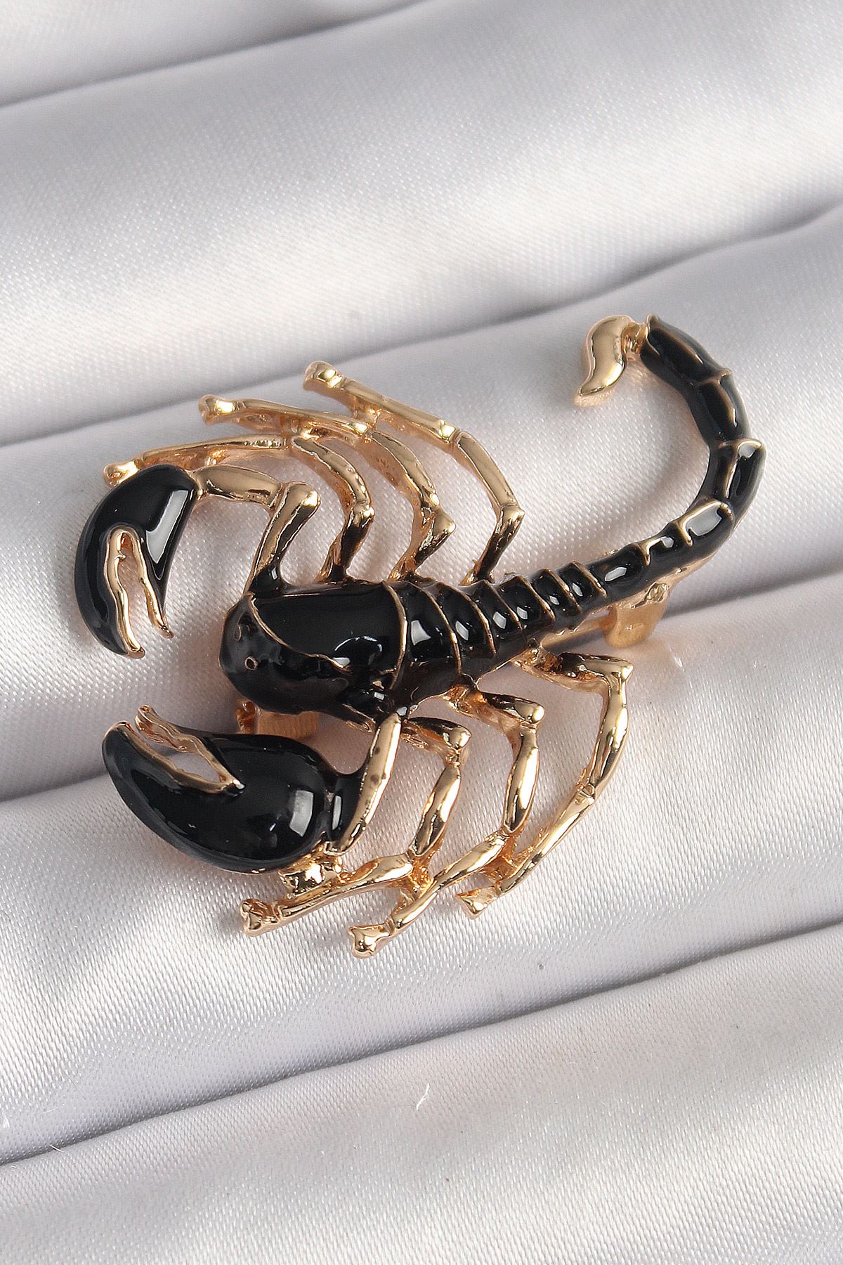Pirinç Gold Renk Siyah Akrep Model Kadın Broş - TJ-BR421